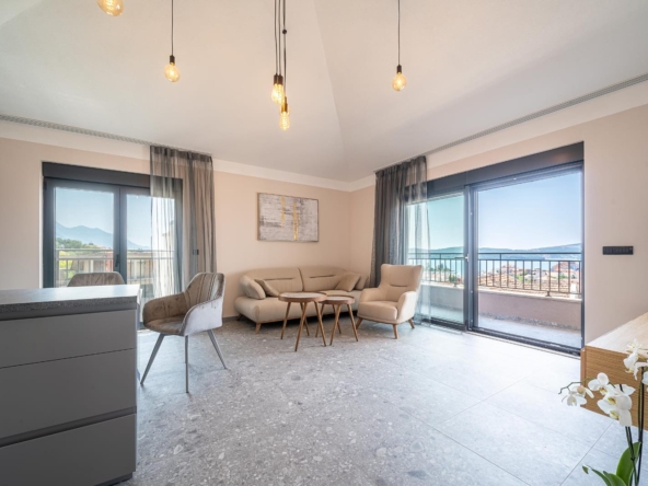 2-Bedroom Apartment in the Heart of Tivat.For sale is a fully furnished 2-bedroom apartment of 78 m, located on the third floor of a building just 500 meters from the sea and 200 meters from the center of Tivat. Offering a fantastic sea view, this apartment is fully ready for immediate occupancy and combines comfort, convenience, and a central location.The apartment features a spacious living room with an open-plan kitchen, two bedrooms, a bathroom, and terraces that provide stunning views of the Adriatic Sea. High-quality finishes and a complete furniture set make this property move-in ready, ensuring a premium living experience.Key Advantages and Location:Situated in the heart of Tivat, close to the Music School and main city amenities.Within walking distance to supermarkets, shops, restaurants, cafes, pharmacies, medical facilities, schools, and kindergartens.A short walk to the Porto Montenegro Marina and promenade, offering luxury lifestyle and leisure options.Additional Features:Three dedicated parking spaces and a storage room.Luxurious finishes and fully furnished interiors.Terraces with panoramic sea views.This apartment is ideal for those seeking urban living with premium comfort, close to all amenities, yet offering the tranquility and beauty of sea vistas. Whether as a permanent residence, vacation home, or investment property, it represents a unique opportunity in one of Montenegros most desirable coastal towns.