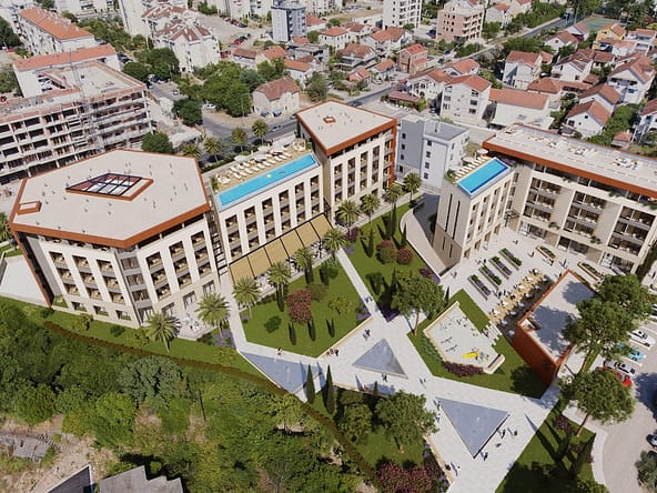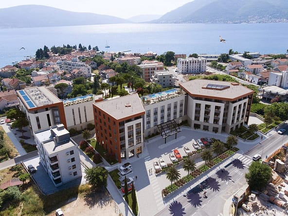 Two-Bedroom Apartments in a Luxury Complex in TivatDiscover modern living in Tivats newest high-class residential complex under Radisson Blu management. This development marks a new chapter for the historic 1970s Tivat Hotel, blending its heritage with modern luxury. Situated in the Seljanovo neighborhood, just a short walk from the coastline and Adriatic Highway, the complex offers an ideal combination of comfort, convenience, and premium lifestyle.The complex consists of two detached buildings, each featuring a rooftop pool, recreation area, gym, and SPA center. Underground parking for 104 cars ensures convenience for residents. Nighttime illumination and landscaped gardens with fountains and a mini park create a welcoming atmosphere for families and residents.The 81.18 m apartments feature a bright open-plan living room with kitchen, two bedrooms, a bathroom, and a guest toilet, designed for both comfort and functionality. The ground floor hosts commercial premises, a restaurant with a large sunny terrace, and a coffee shop.Residents enjoy a prime location within walking distance to a 2-km waterfront with several equipped beaches, sports grounds, a medical center, church, school, kindergarten, cafes, restaurants, and supermarkets. The main marina and Tivat city center are just a 15-minute walk away.Combining world-class hotel standards with a residential lifestyle, this complex is perfect for those seeking modern, high-quality living in one of Tivats most promising neighborhoods.