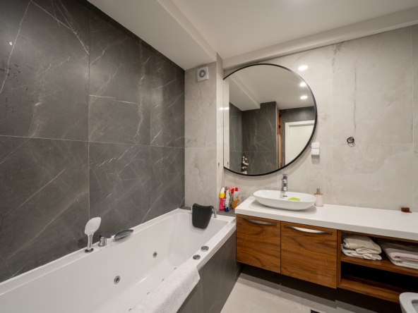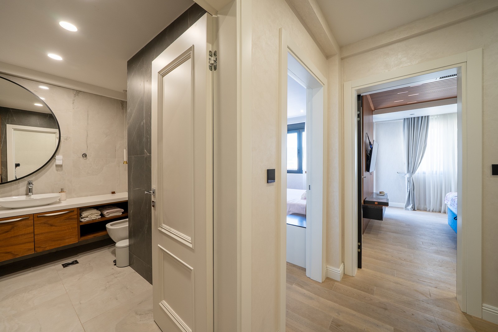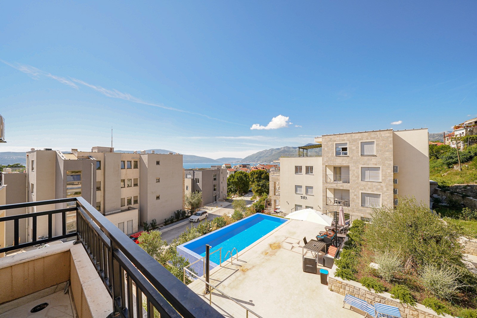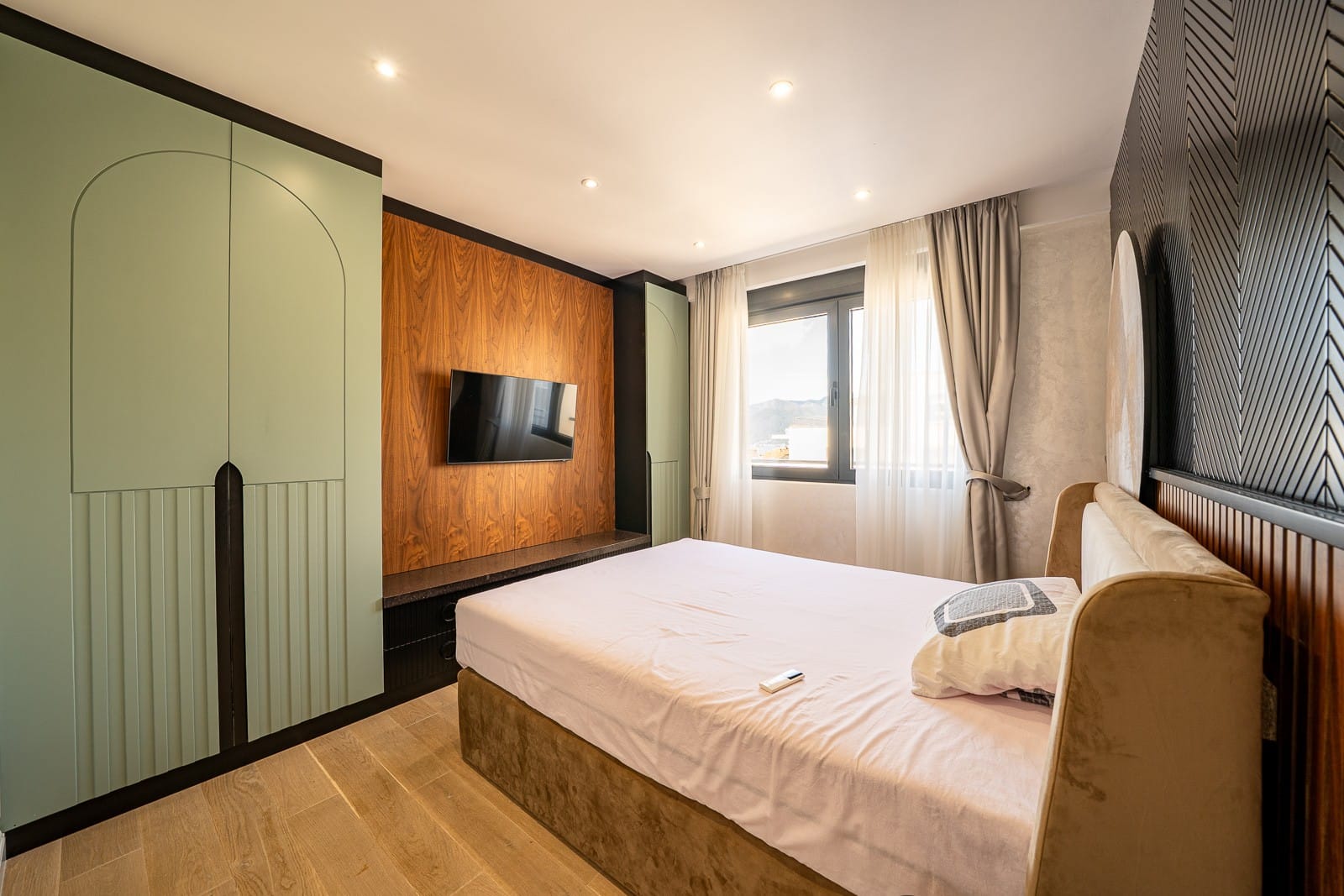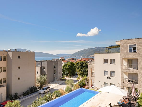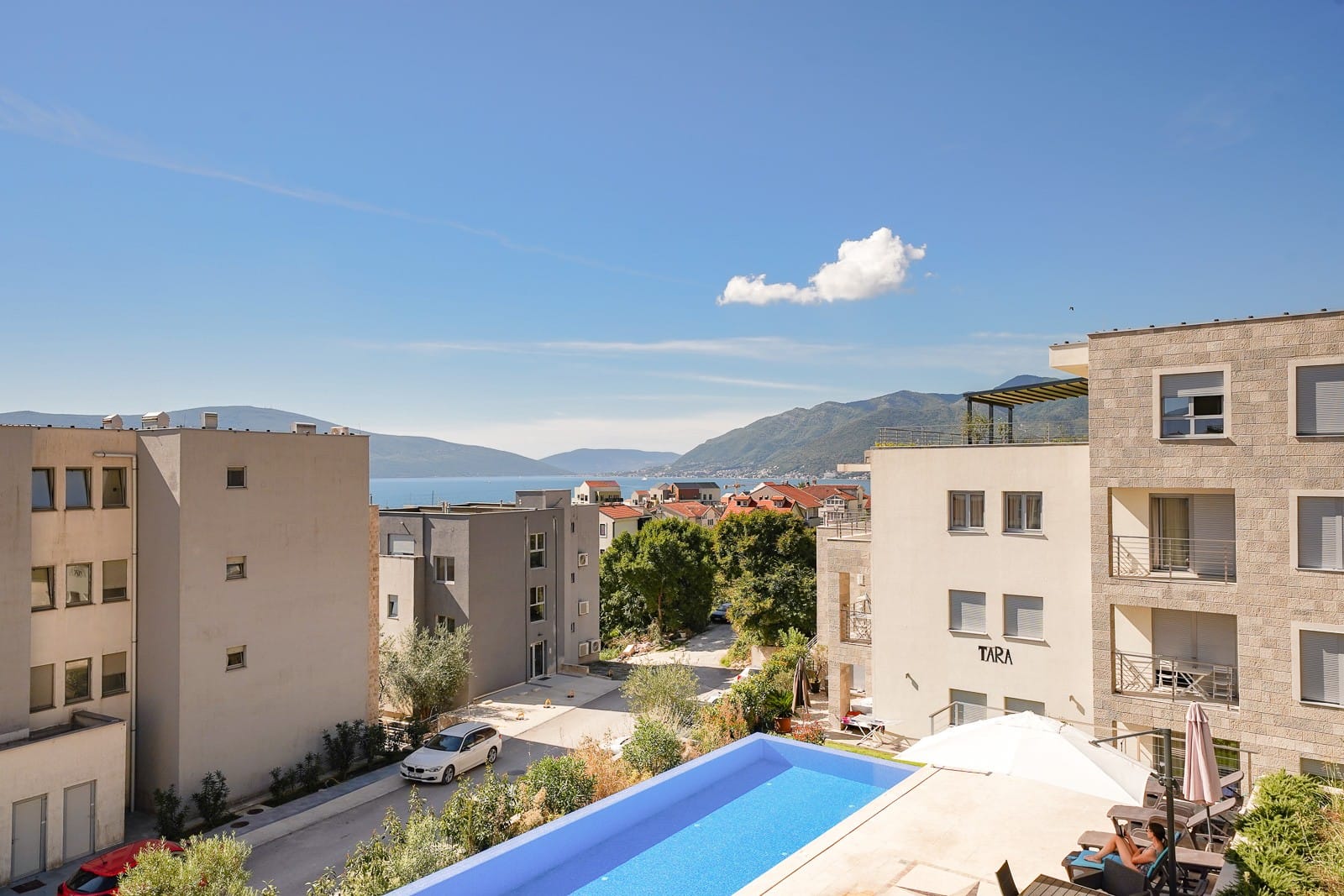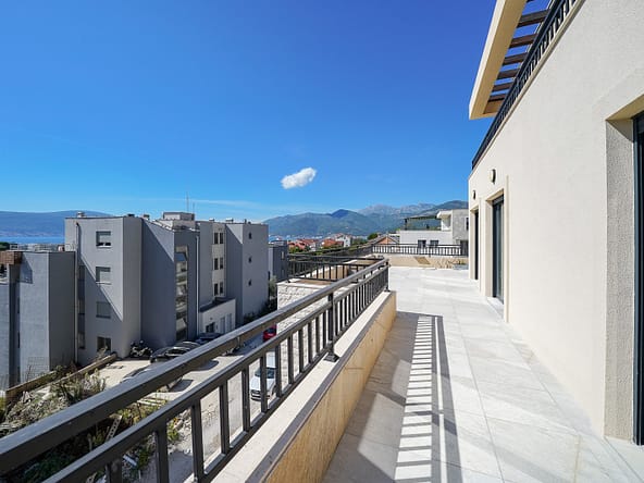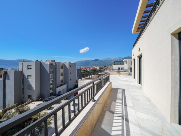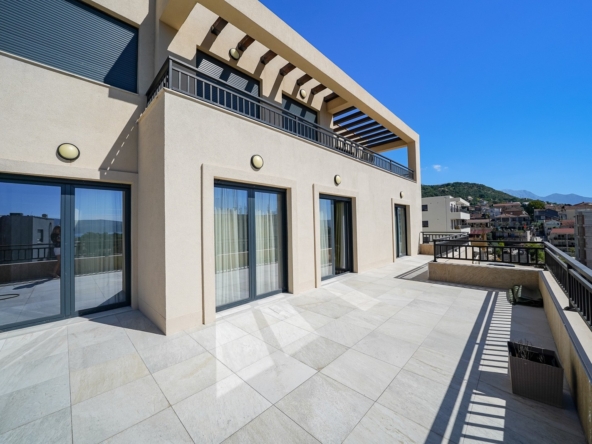 Exclusive 3-Bedroom Apartment in the Heart of Tivat.We are pleased to present an exclusive 3-bedroom apartment in a modern residential building located in the very center of Tivat, one of the Adriatics most prestigious and convenient locations. Surrounded by new residential complexes, cozy cafs, green parks, schools, and the Knightsbridge International School, the apartment combines luxury, comfort, and urban convenience.The apartment offers a total of 164 m, including 109 m of interior space and a spacious 55 m terrace. The bright and airy living room with an open-plan kitchen opens directly onto the terrace, creating a perfect space for family living or entertaining guests. The layout includes three bedrooms, two bathrooms, a guest toilet, and a utility room, ensuring maximum comfort and functionality.Key Features of the Apartment:Designer furniture and high-quality household appliances are included.Underground garage of 66 m, accommodating up to three cars, with direct elevator access.Modern interior design with premium materials and smart zoning to maximize natural light.Partial sea and mountain views from windows and terrace.Building Advantages:Secure underground parking and elevator access.Quiet and green neighborhood, ideal for family living.Just a 5-minute walk to Porto Montenegro and the seaside promenade.This property is perfect for those seeking a spacious, move-in ready home in a rapidly developing area of Tivat. It represents a rare opportunity for permanent residence or a high-potential investment, combining city life, coastal beauty, and luxury living in one of Montenegros most sought-after locations.