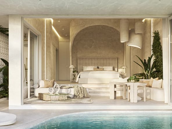 Escape to your own oceanfront sanctuary in the heart of Bingin, Uluwatu with this luxurious 3-Bedroom Apartment, poised elegantly on Bali's prestigious cliff-fronts. Priced at USD 1,400,000 and boasting 400 square meters of exquisitely designed interiors, this ground-floor residence offers not just a home, but a lifestyle of unparalleled luxury and tranquility. Dive into the sublime with sweeping north-west facing views, ideal for enjoying the island's breathtaking sunsets from your expansive private lap pool, in-ground spa bath, or ice bath, all perfectly overlooking the majestic ocean.The apartment's sophisticated interiors feature an open-plan living area complemented by a state-of-the-art kitchen equipped with dual induction cooktops, a fridge, and an optional wine fridge. Experience indulgence with elegant bathrooms boasting his and hers showers and an outdoor shower for a true tropical living experience. With centralized air conditioning, high-speed Wi-Fi, and a drilled well water supply, comfort and convenience are at the forefront. Moreover, the communal surfboard storage ensures seamless access to the famed Impossible Surf Break for the adventurous at heart.Beyond the residence, Uluwatu offers a vibrant community with an array of dining and retail experiences that blend local charm with modern luxury. Savour exquisite meals at nearby world-class restaurants or enjoy retail therapy at boutique shops. The locality also boasts reputable schools, making it a perfect haven for families or a lucrative investment opportunity with strong rental income potential.