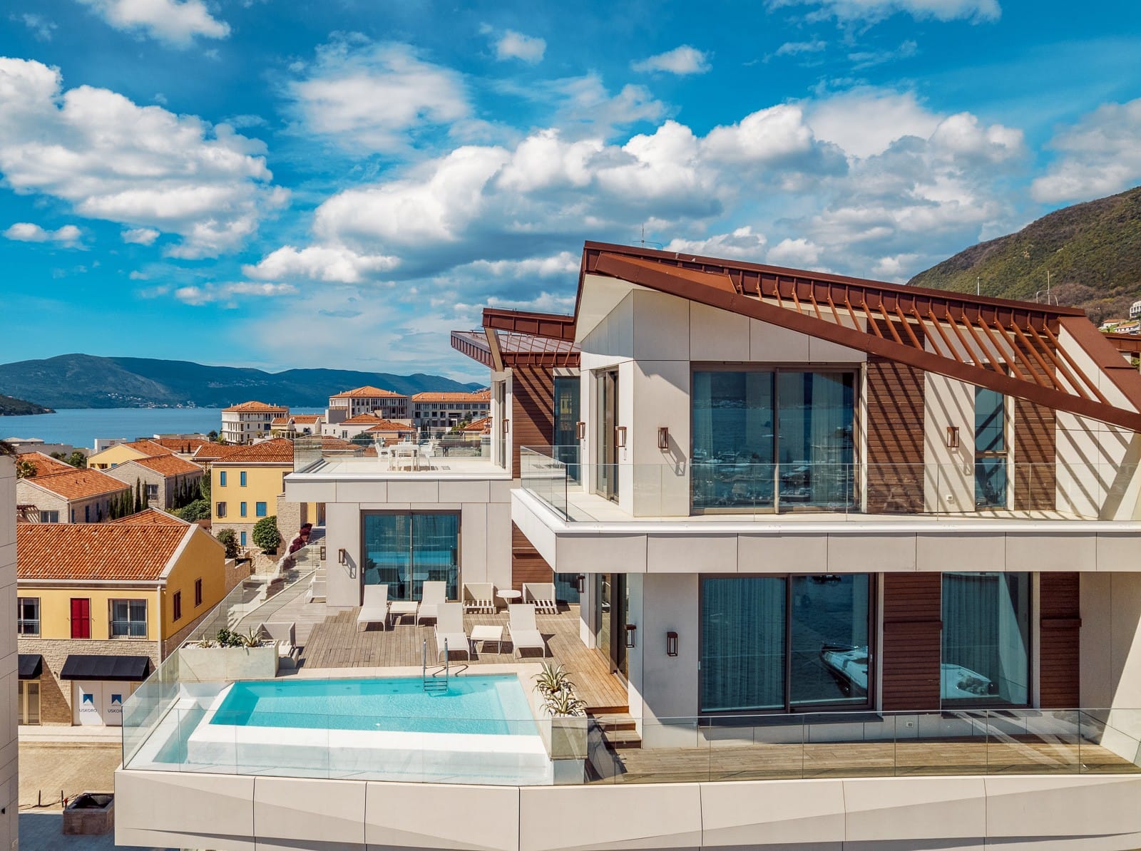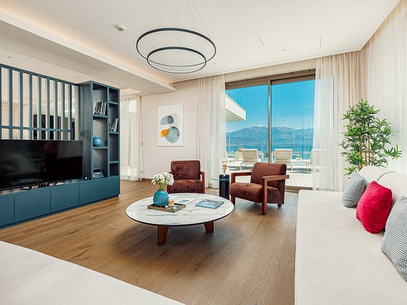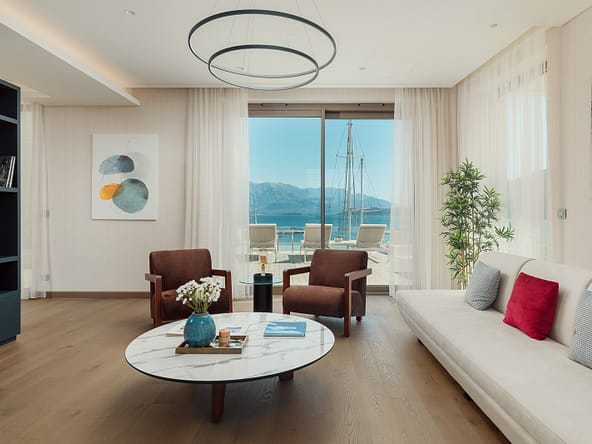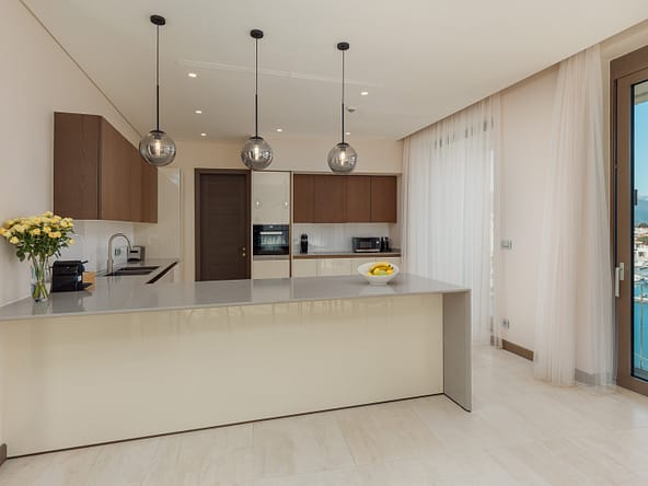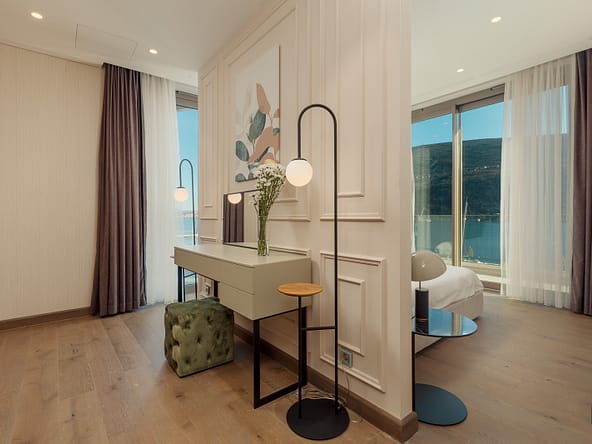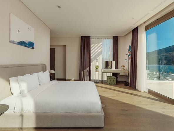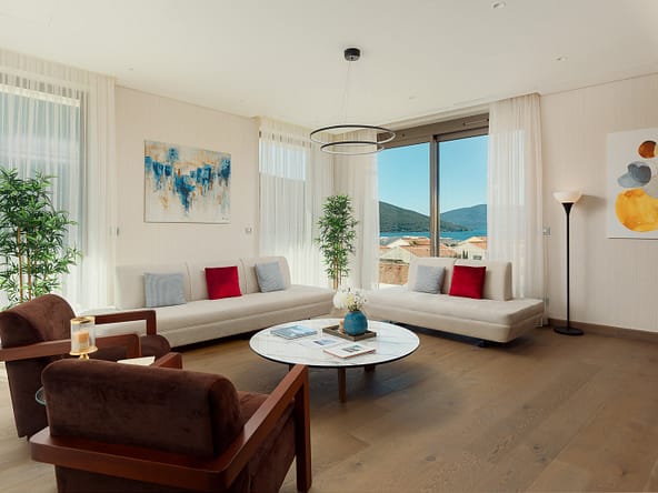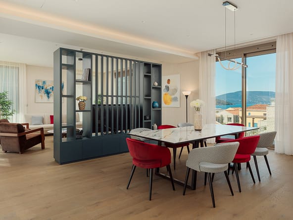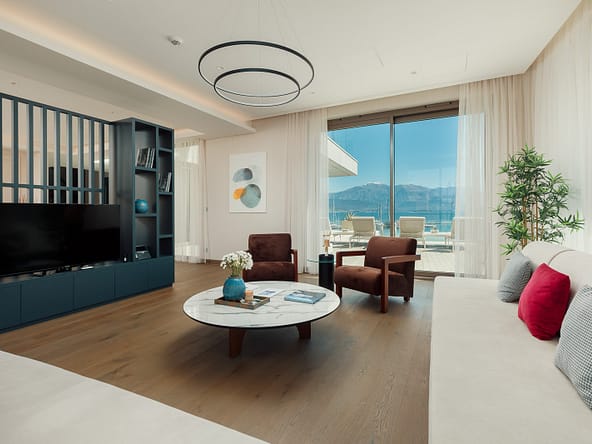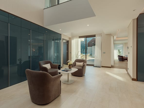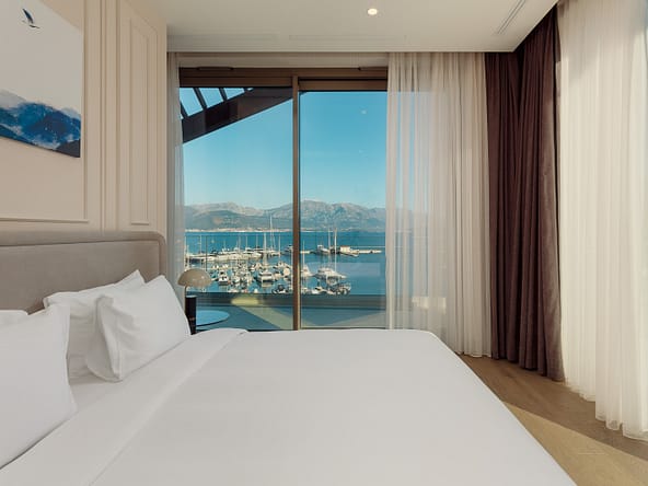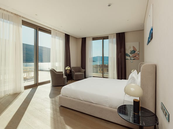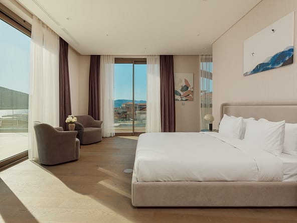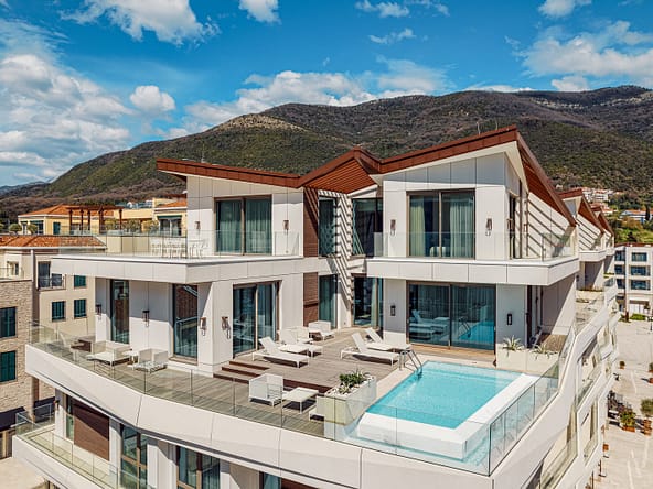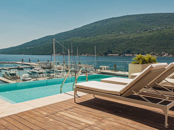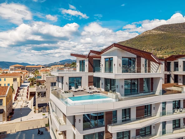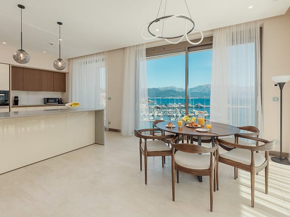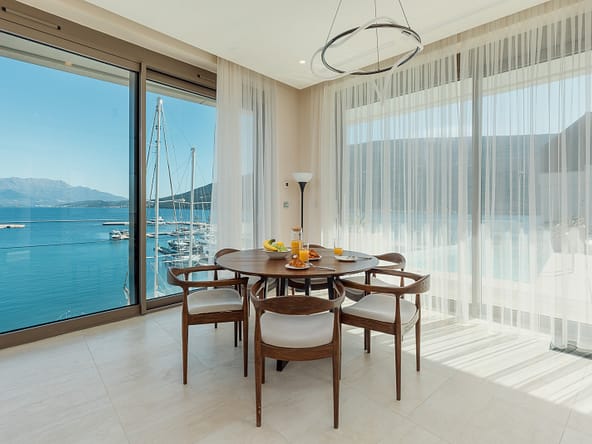An exceptional 3-bedroom Sky Villa located in Marina Residences, the most prestigious residential area of Portonovi, a world-class waterfront resort on the Adriatic coast. Positioned just 30 meters from the sea, this unique duplex penthouse combines villa-style privacy with full resort services.The total area is 611 m, including 341 m of interior space, 238 m of panoramic terraces, and a 33 m private pool overlooking the marina and the Bay of Kotor. The property is fully furnished, equipped with premium materials and appliances, and ready for immediate occupancy. A garage space and a storage unit are included.Layout:Lower level features a spacious living room, dining area, fully equipped kitchen, master bedroom with en-suite bathroom, guest WC, and direct access to a large terrace with a private pool and breathtaking marina views.Upper level offers two en-suite bedrooms and a panoramic terrace ideal for outdoor relaxation, entertaining, or enjoying unforgettable sunsets.This sky villa offers exceptional comfort, privacy, and functionality, with expansive outdoor areas and floor-to-ceiling windows showcasing spectacular views.Residents of Portonovi enjoy a full-service luxury lifestyle including a private marina with customs services and helipad, private beaches, promenades, fine dining, luxury boutiques, One&Only Resort, Henri Chenot Wellness & Medical Spa, fitness and sports facilities, landscaped parks, childrens areas, and 24/7 security, concierge, and property management.A flexible interest-free payment plan is available: 15% upon signing the SPA and 85% over 36 months.This rare property offers strong rental potential, a prime marina-front location, and convenient access just 1520 minutes from Tivat International Airport.