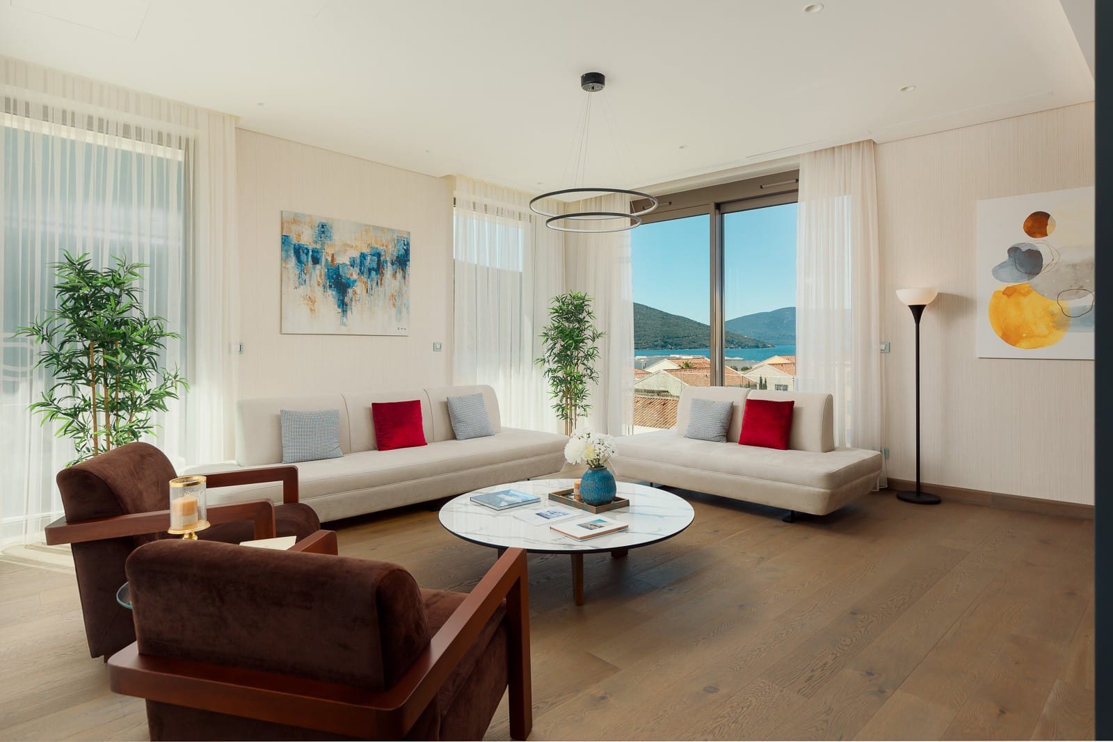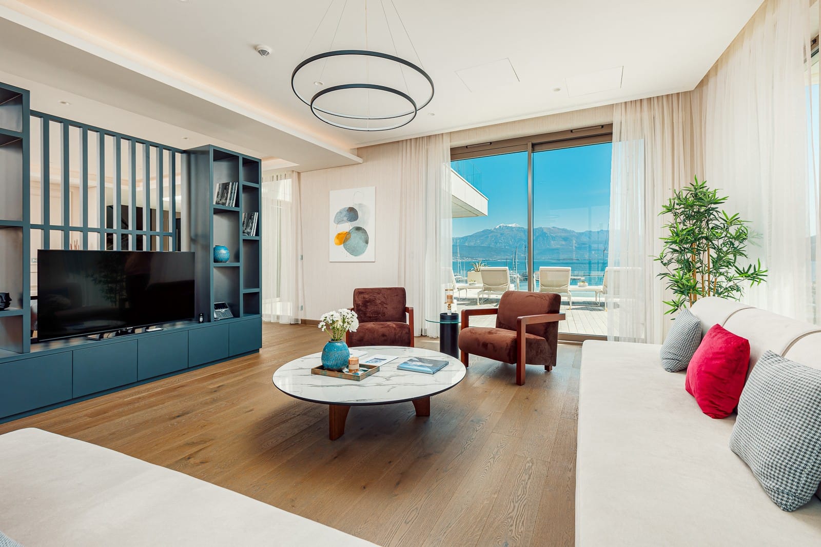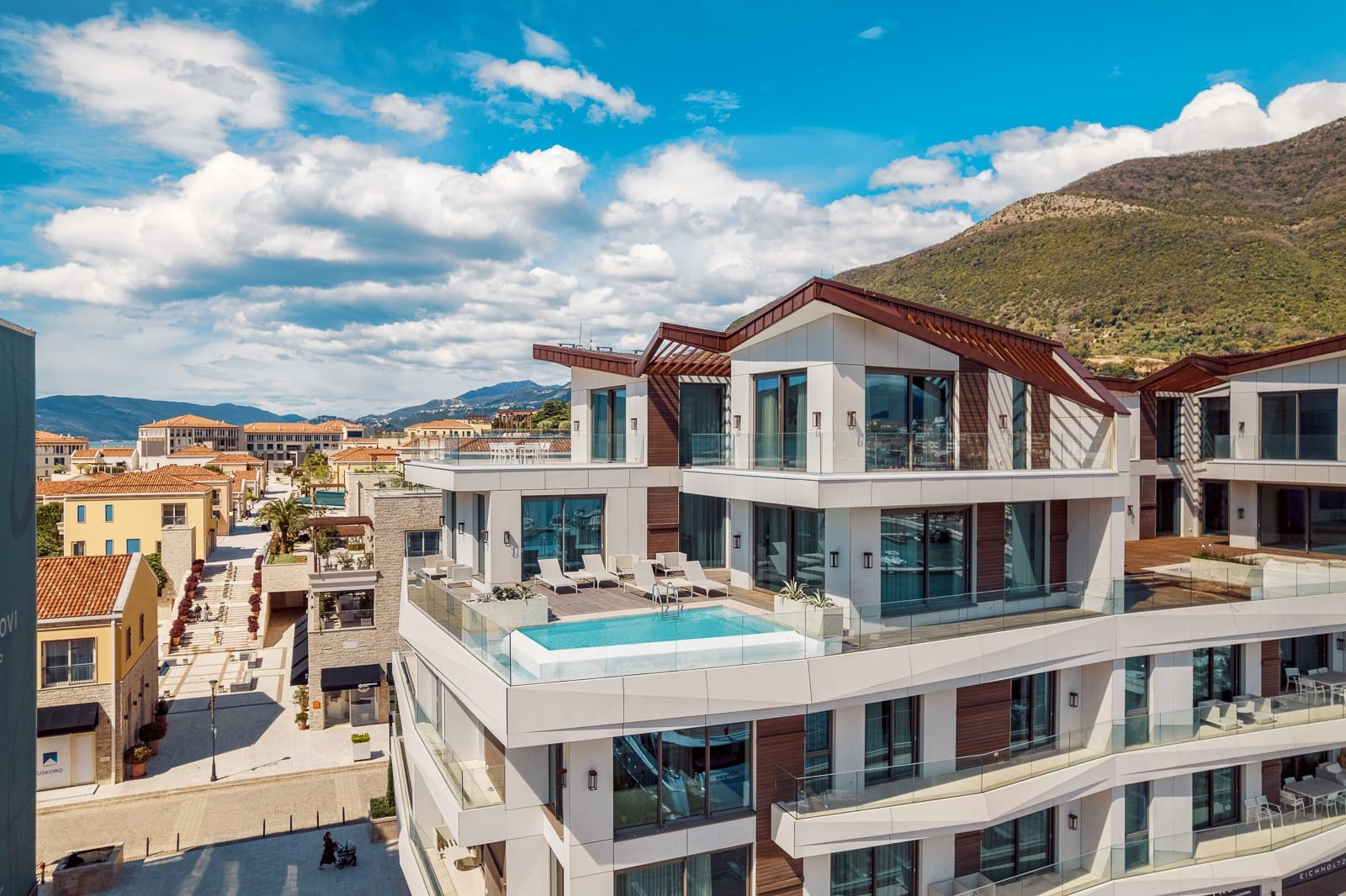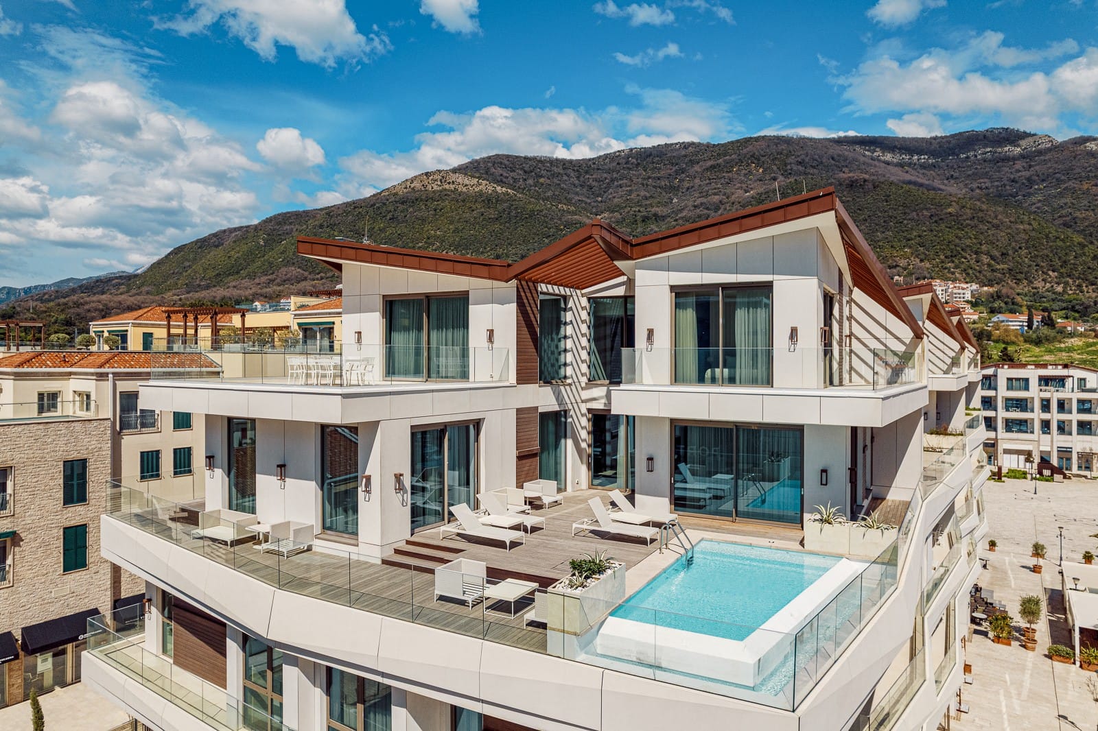 An exceptional 3-bedroom Sky Villa located in Marina Residences, the most prestigious residential area of Portonovi, a world-class waterfront resort on the Adriatic coast. Positioned just 30 meters from the sea, this unique duplex penthouse combines villa-style privacy with full resort services.The total area is 611 m, including 341 m of interior space, 238 m of panoramic terraces, and a 33 m private pool overlooking the marina and the Bay of Kotor. The property is fully furnished, equipped with premium materials and appliances, and ready for immediate occupancy. A garage space and a storage unit are included.Layout:Lower level features a spacious living room, dining area, fully equipped kitchen, master bedroom with en-suite bathroom, guest WC, and direct access to a large terrace with a private pool and breathtaking marina views.Upper level offers two en-suite bedrooms and a panoramic terrace ideal for outdoor relaxation, entertaining, or enjoying unforgettable sunsets.This sky villa offers exceptional comfort, privacy, and functionality, with expansive outdoor areas and floor-to-ceiling windows showcasing spectacular views.Residents of Portonovi enjoy a full-service luxury lifestyle including a private marina with customs services and helipad, private beaches, promenades, fine dining, luxury boutiques, One&Only Resort, Henri Chenot Wellness & Medical Spa, fitness and sports facilities, landscaped parks, childrens areas, and 24/7 security, concierge, and property management.A flexible interest-free payment plan is available: 15% upon signing the SPA and 85% over 36 months.This rare property offers strong rental potential, a prime marina-front location, and convenient access just 1520 minutes from Tivat International Airport.