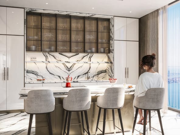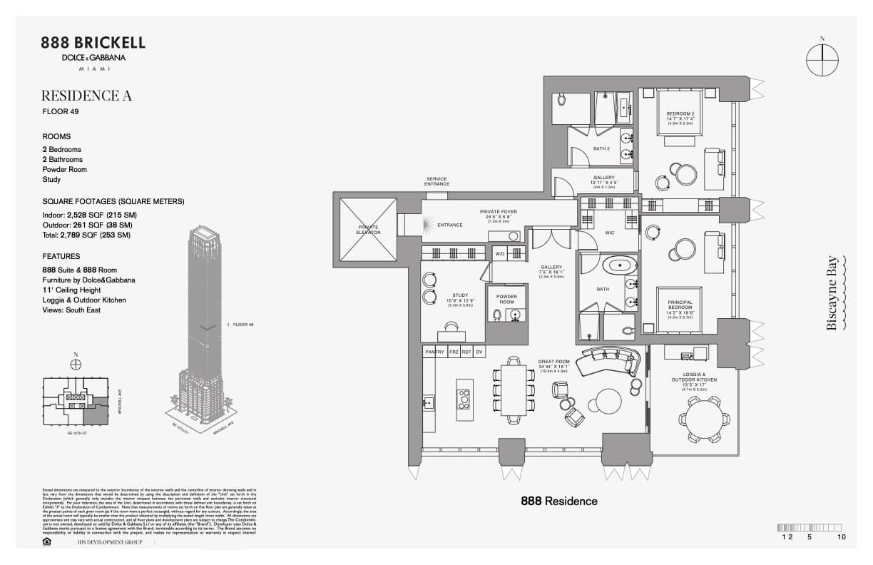 The complex consists of 259 residences, including condominiums with 1 to 4 bedrooms, as well as duplexes and penthouses. The interior design was created by Dolce & Gabbana and offers fully furnished apartments. The custom designed kitchens are equipped with all SubZero and Wolf appliances. Residences feature built-in walk-in closets and a Miele washer and dryer.