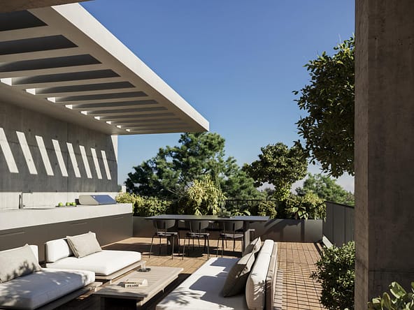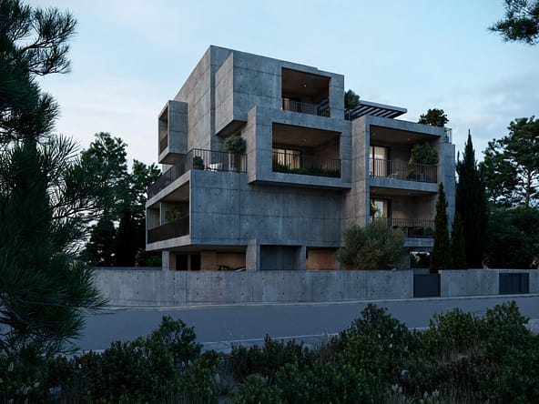 Akakia Residences is a development of apartments that combines modern design with a prime location, located in the heart of Paphos city and close to the sea. The modern philosophy of the building is reflected in the fair-faced concrete exterior walls and the use of top-quality marble and parquet, all these in an earth palette, to combine urban living with natural aesthetics.