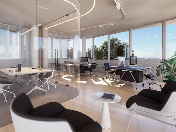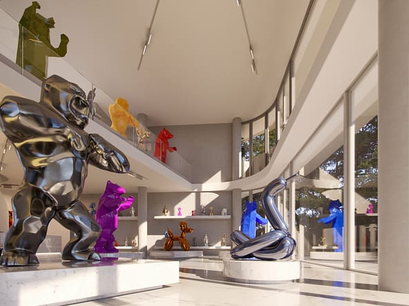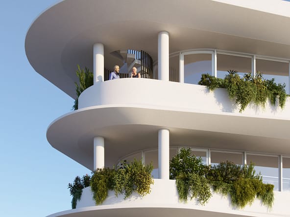 The feeling of space, openness and light follows you all around this building due to its unique curved architecture. This feature highlights the inviting outdoor verandas that enjoy cityscape views on every floor.Â