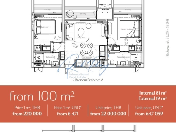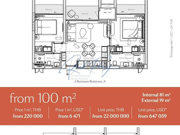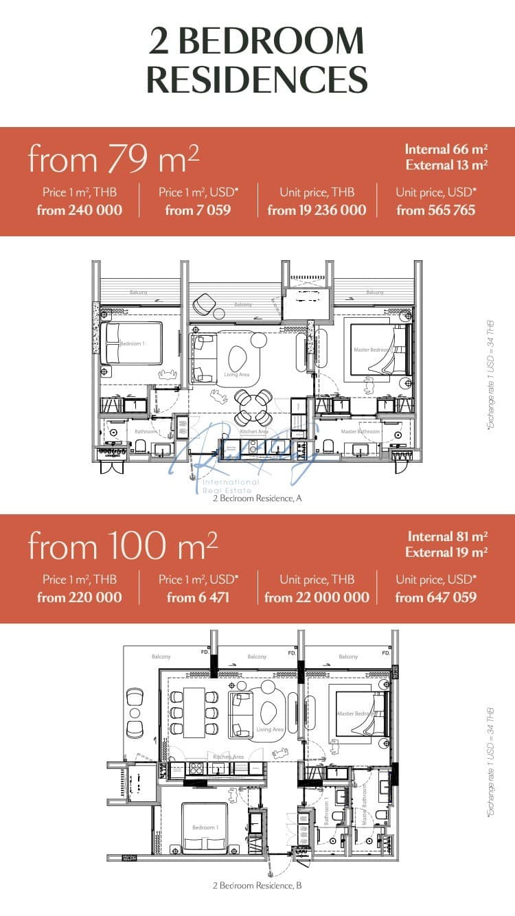 Bang Tao Residences is a one of a kind destination located just 250m from a picturesque beach, nestled in the heart of a lush green enclave. Spanning an expansive 11200m2, this serene haven is surrounded by vibrant greenery offering resididents a unique blend of privacy and comfort. The complex features six modern buildings, comprising 455 elegantly designed residences, a combination of 1, 2, 3 and 4 bedroom apartments and penthouses, ideal for contemporary living. The infrastructure at is thoughtfully designed to cater to every resident’s needs. Amidst the verdant landscape, you’ll discover a wellness center, a dedicated children’s area, playgrounds, and a stylish clubhouse for socializing and relaxation. A selection of three exceptional restaurants, a business center, and an outdoor cinema provide endless opportunities for leisure, while a lagoon-style pool with white sand evokes the ambiance of a tropical paradise. For pet owners, a spacious dog park ensures their furry companions feel right at home, and fully equipped gyms support an active lifestyle at any time. Features & AmenitiesWellness CentreGymDog ParkChildrens PlaygroundsOn Site ClubhouseOutdoor CinemaLagoon style poolBusiness Centre3 On Site Restaurants Property Type2 Bedroom / 2 Bathroom From 79 sqm From $565,765 USD LocationBang Tao Residents is located just 50 meters from Bang Tao Beach in Phuket and a 5-minute walk from Laguna Phuket. 20 minutes from Phuket International Airport 5 minutes to Boat Avenue and Porto-de-Phuket with top shopping areas, grocery stores and boutiques 10 minutes to Blue Tree Kids Water and Activity Park 30 minutes from British International School 35 minutes to Central Floresta Shopping Mall 5 minutes to Bangkok Hospital (Clinic Bang Tao) Completion Date Estimated Q4 2027
