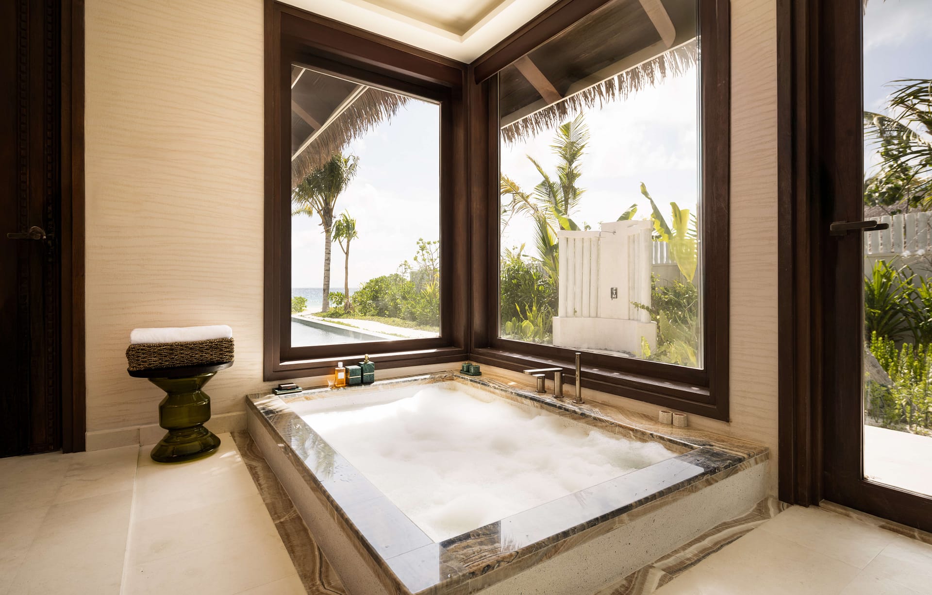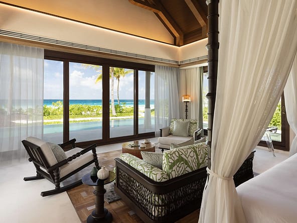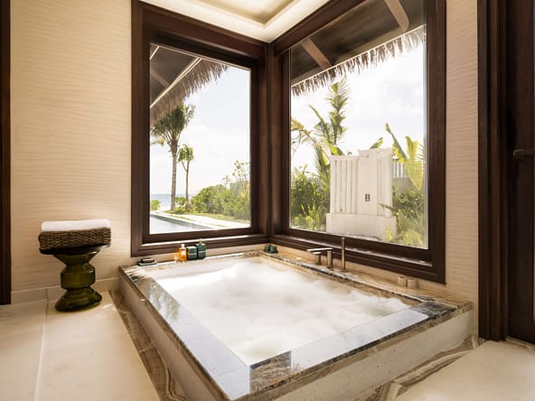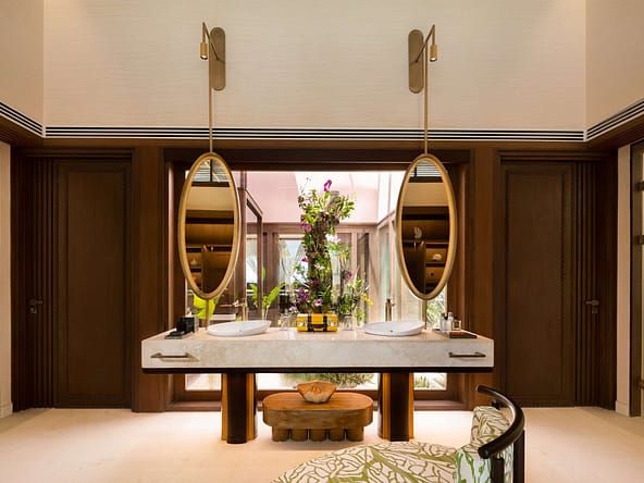 These expansive villas are conceived as modern pleasure palaces defined by soaring ceilings, indulgent design details, and the highest levels of privacy and personalised service.Every villa offers generous lounge areas, en-suite bathrooms, walk-in wardrobes, his and hers WCs, all-round jet rain showers, bathtubs, outdoor salas, decks, and outdoor showers. State-of-the-art AV systems with surround sound, minibars, wine fridges, and coffee & tea facilities come as standard.