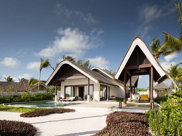 This ultra luxury isle features some of the Maldives most colossal and plush accommodations. Villas range from 900sqm to 1500sqm with rival pools. Interior feature bathtubs inlaid with semi-precious tones and beach units include zen courtyards. Guests are served by the apex of butler services and enjoy a multitude of haute cuisine dining options and state of the art wellness trigrams. Set to become one of the most iconic addresses in the world.