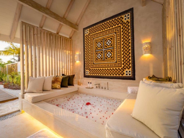 Perched on the edge of the atoll, this stunning resort sits beside an exclusive dolphin sanctuary. On land,guests can mingle and indulge in a wide range ofepicurean offerings, social activities, and culturalhappenings. The sleek design, whimsical surprises,and vibrant social spaces combine to create anexclusive hideaway for in-the-know globetrotters.Location•South Malé • Velana International Airport 40 minutesby speedboat•Island size: 87,700sqm (8.77 hectares)