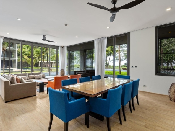 Rare Beachfront Foreign Freehold on Mai Khao BeachBeachfront property in Phuket is raretrue foreign freehold ownership on the beach is rarer still. This ground-floor penthouse at Baan Mai Khao is one of those scarce opportunities: a spacious 263 sqm residence with secure foreign freehold title held via a Singaporean company.Just steps from the sand, the home blends indoor elegance with outdoor serenity. Expansive sliding doors open to a private terrace leading directly to Mai Khaos pristine, quiet shoreline. Inside, youll find imported Italian furnishings, warm wood accents, and calming ocean-inspired tones. A fully equipped kitchen with wine chiller, five bathrooms, and spa-style rain showers complete the experience.Never rented and in immaculate condition, the penthouse is ideal as a private residence, lock-and-leave retreat, or premium investment.Set within one of Phukets most exclusive beachfront estates, Baan Mai Khao offers 70 meters of absolute beachfront, three swimming pools, a seafront sun deck, fitness center, 24-hour security, concierge, and landscaped tropical gardens connecting the lobby directly to the beach.Mai Khao Beach is known for its tranquility and exclusivity, yet remains just 15 minutes from Phuket International Airport and near world-class resorts including JW Marriott, Anantara, and Renaissance.With beachfront land disappearing and freehold opportunities nearly extinct, this is a rare chance to own a piece of Phukets finest coastline.