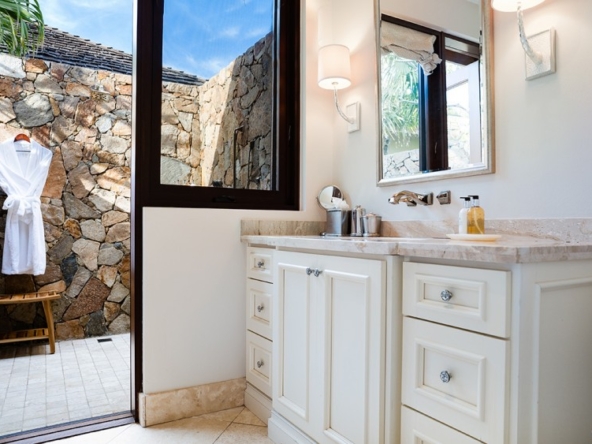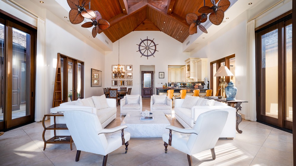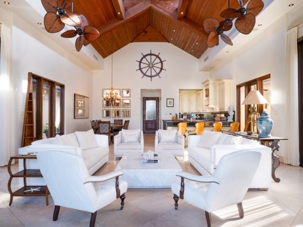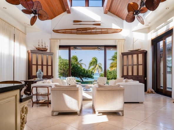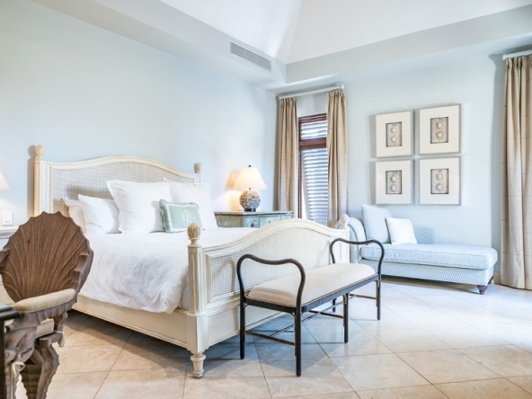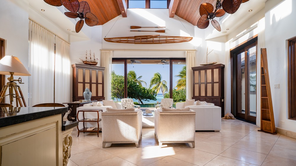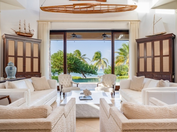 Bella Beach Villa at Oil Nut Bay is lavish beachfront living at its best. This grand beauty offers exquisite accommodations in the form of two stately master bedrooms and four graceful guest suites. Vaulted ceilings preside over a gourmet kitchen with central island and breakfast bar as well as an elegant Great Room with twin flat screen TVs. The home also features a chefs kitchen, home gym and laundry room.Sliding doors lead to an expansive verandah with sparkling infinity pool, dedicated sunbathing and shaded lounging areas, a grill, and an outdoor dining table. Take a stroll across the manicured lawn directly to the pristine, white sand beach and protected bay beyond. Bella Beach Villa is a beautiful family getaway for the discerning traveller.