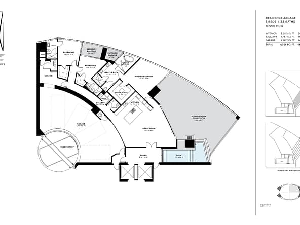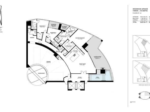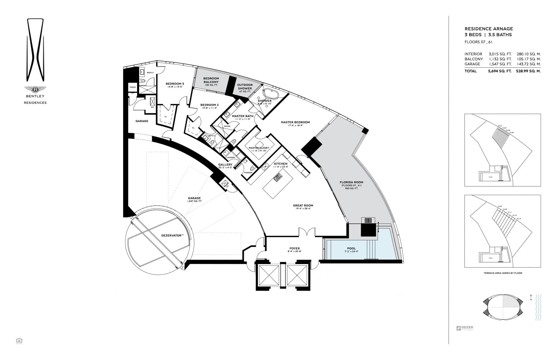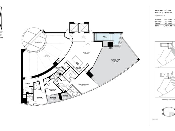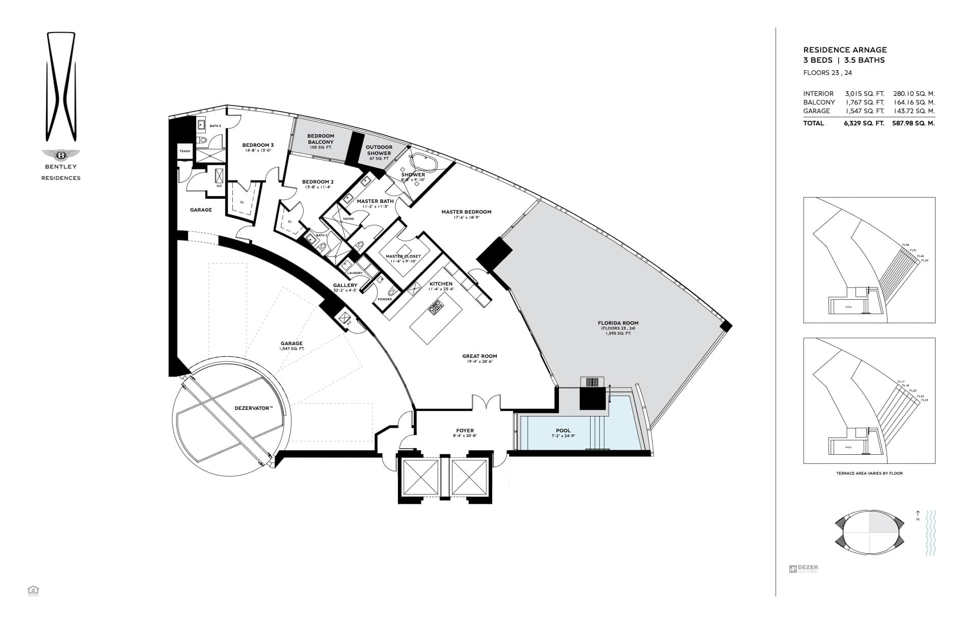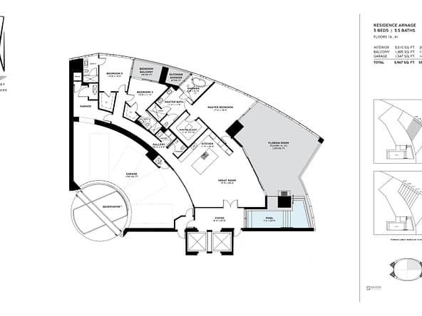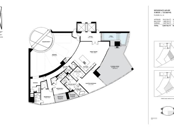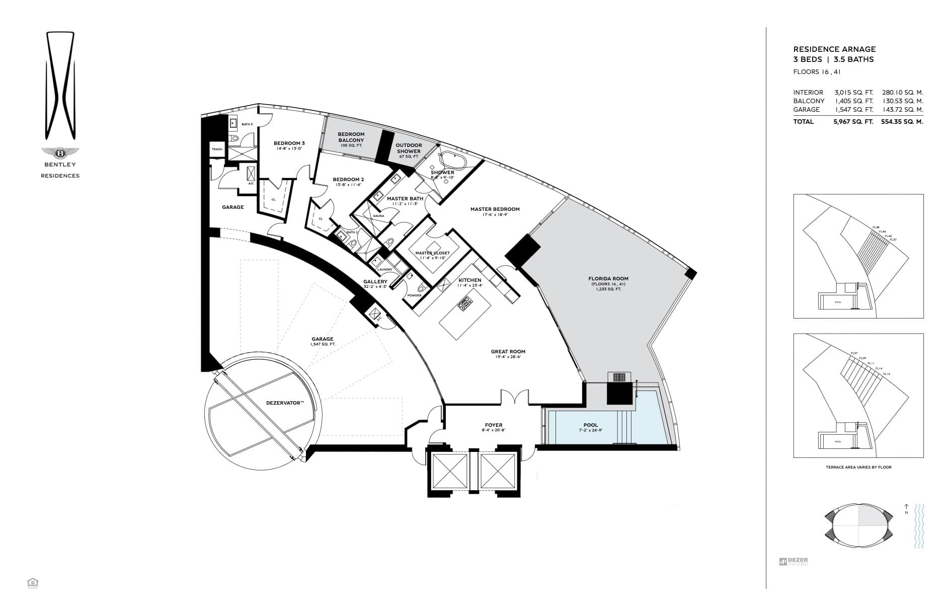 The tower offers of 216 luxury residences, including 3-bedroom apartments with private pools on outdoor terraces and views of the Atlantic Ocean. The interior design was created by Bentley Motors studio. Exquisite furniture and custom-made decor create a comfortable and stylish space for living. Distinctive features of the complex are private car halls at each level, with Dezervator glass elevator system for cars lifting.