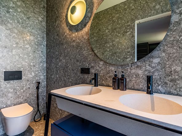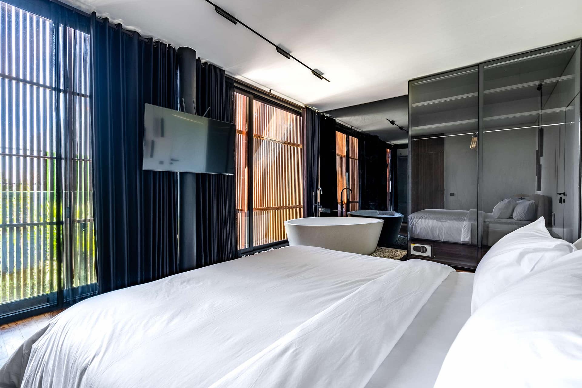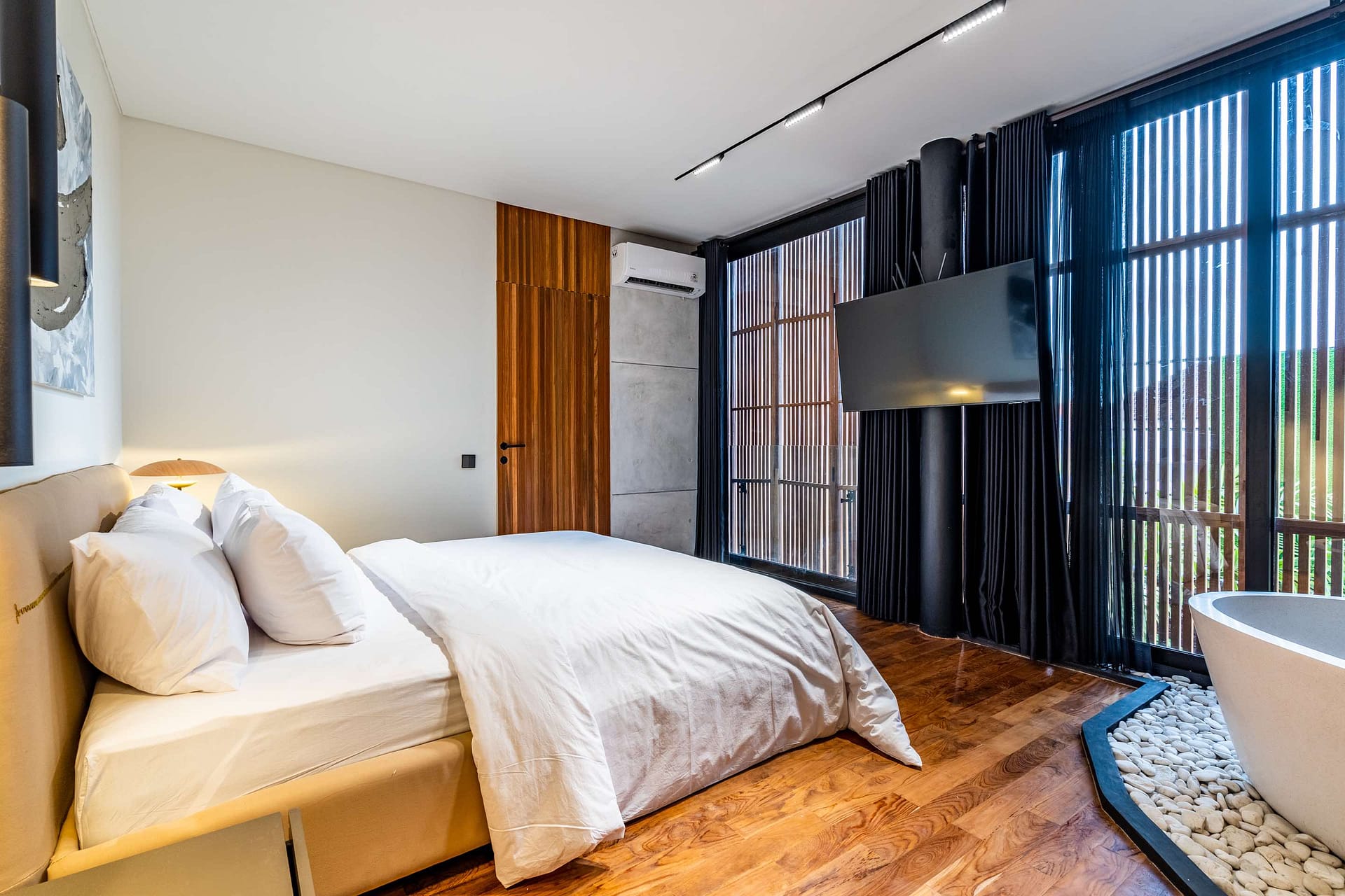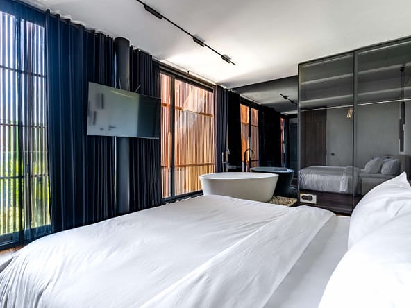 On the roofs of all 9 villas, you will find the largest calligraphy in Indonesia. It was created in collaboration with a contemporary artist as a symbol of unity among people and cultures. It is a great honor that Pokras Lampas, alongside major buildings in global capitals and world-renowned brands, chose Bali and the roofs of our villas. We quickly determined the phrase we wanted to immortalize, as Bali represents the idea that the world is one!