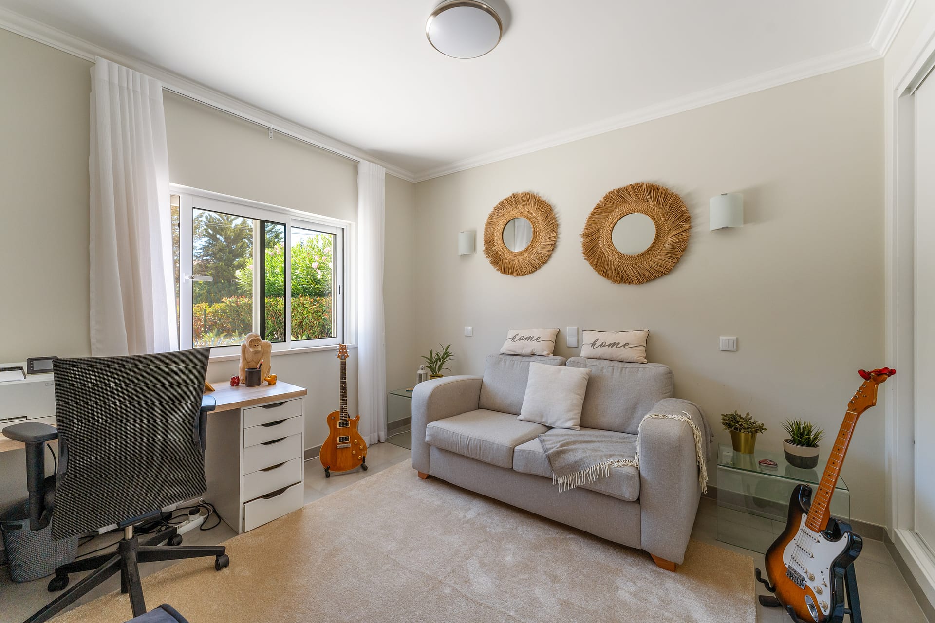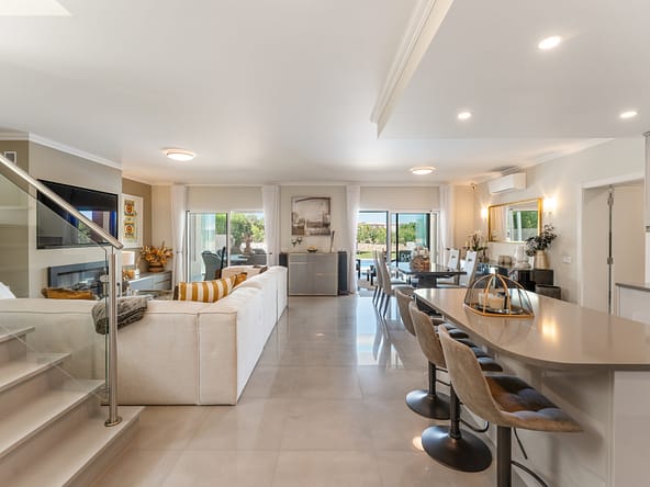 Contemporary 3+1 bedroom villa located within the prestigious Boavista Golf & Spa Resort in Lagos, offering modern comfort, privacy and strong investment potential. Completed in 2023 and upgraded with over 100,000 in premium finishes, this turnkey property is sold fully furnished and ready to move in.The villa features three spacious en-suite bedrooms plus an additional versatile room ideal as a guest suite, office or gym. The open-plan living area connects seamlessly to the outdoor terrace and private heated 8×4 m pool, creating perfect indoor-outdoor living. A winter terrace can be enclosed with glass to extend the living space year-round.High-spec features include underfloor heating on the ground floor, air conditioning, ethanol fireplace, double glazing, electric shutters and an A energy rating for efficiency and comfort. The garage is finished to living-area standard and complemented by a laundry room, storage and extended private driveway.Set inside the golf environment yet fully independent, the property benefits from included golf rights with 50% membership discount and no condominium or resort fees. Eligible for Alojamento Local (AL) licence with estimated rental potential above 46,000 per year.Ideally positioned between Lagos and Praia da Luz, minutes from beaches, marina, schools, restaurants and only 50 minutes from Faro Airport.