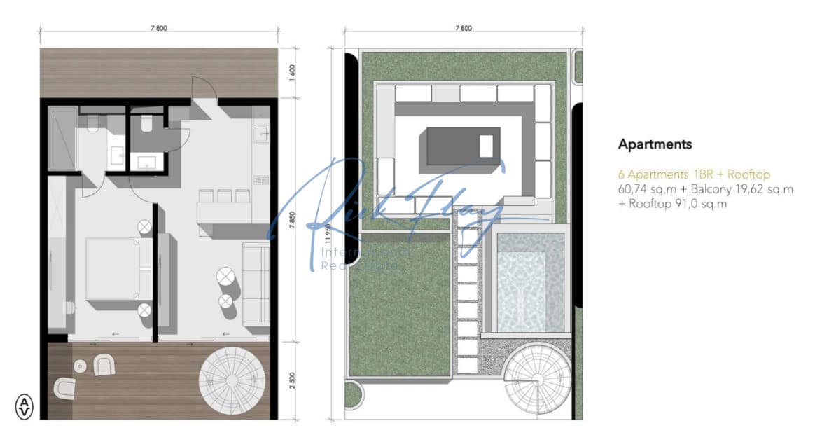This modern-built complex is located in the most developed area of Bali – Canggu. Just a 3-minute drive to Perenenan beach, where you can enjoy the breathtaking sunsets the island is famous for. Nearby is the popular beach club La Brisa, and every Sunday there’s a local market perfect for spending time and soaking in the atmosphere. Cafés, bars, and restaurants are all within walking distance of the complex. Each rooftop in the complex offers picturesque views of the city and mountains.