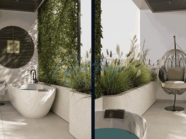 Inspired by the island’s natural beauty, it features soft, curved architecture covered in greenery, and a stunning lagoon-style pool that flows through the heart of the complex. A sandy shoreline surrounds the water, creating the feeling of your own private beach. The project offers a mix of villas, townhouses, and apartments – all designed for comfort and a connection to nature. Rooftop areas offer ocean views, while shared spaces like the gym, cinema, coworking zone, and an outdoor jogging track around the complex, creates a unique living and a lifestyle that’s both relaxing and active. Acoustic waterfalls, in addition to aesthetics, serve as a sound barrier, separating active and quiet zones.