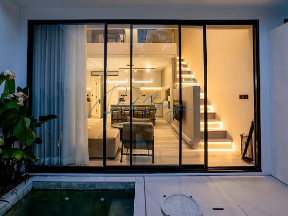 These townhouses with picturesque views right by the ocean on one of the most expensive streets in Bali, on Batu Bolong.Â