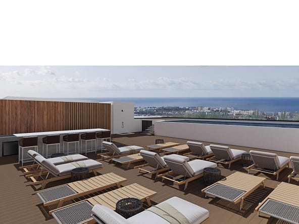 Step outside onto the rooftop garden and discover an oasis of leisure and relaxation.  Take a refreshing dip in the communal swimming pool while soaking in panoramic views. Whether you’re basking in the warm Mediterranean sun or enjoying a leisurely swim beneath the azure skies, every moment spent at Celestia is infused with a sense of tranquility and rejuvenation.