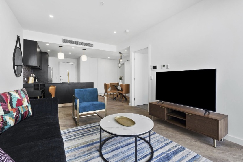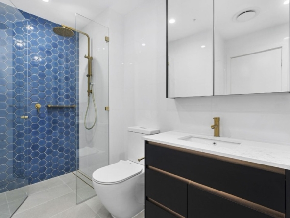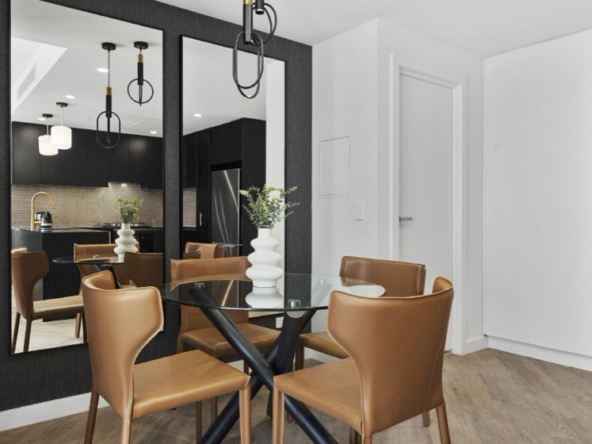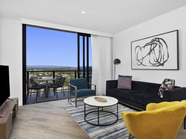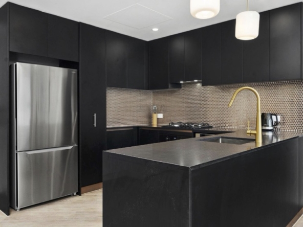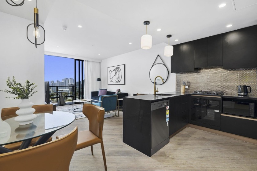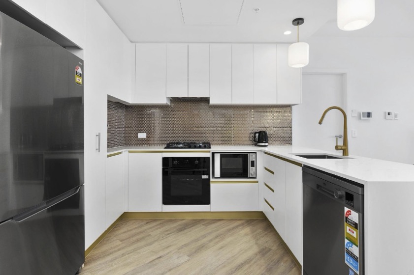 Each apartment is designed with contemporary aesthetics featuring spacious interiors that allow for ample natural light and offer expansive views. The residences are appointed with high quality finishes and fixtures, such as European-style flooring, plush carpets, and premium European appliances. Stone benchtops and ducted air conditioning further enhance the luxurious feel of the apartments.