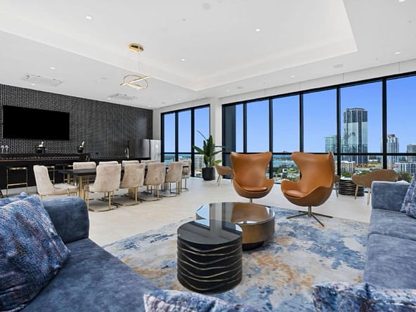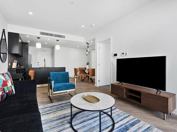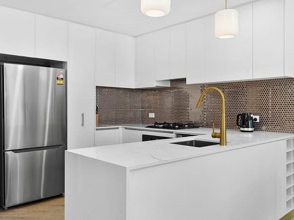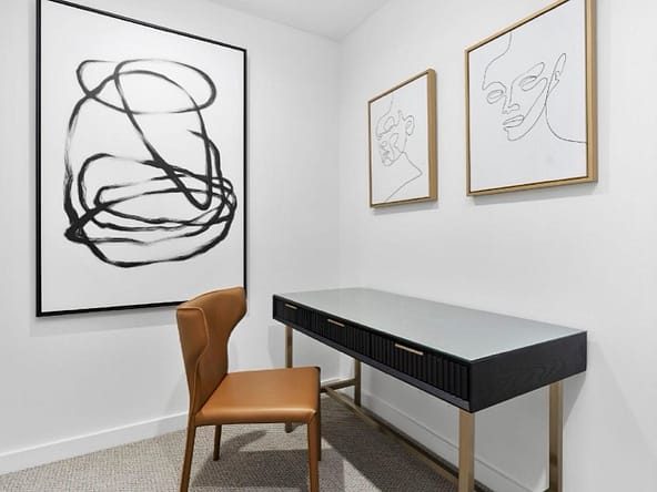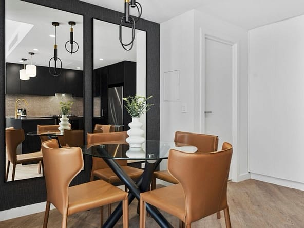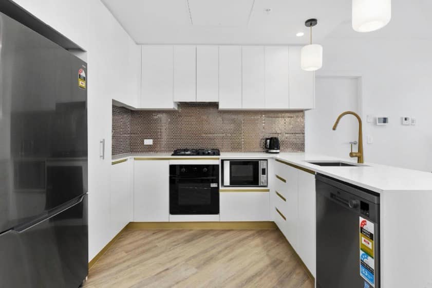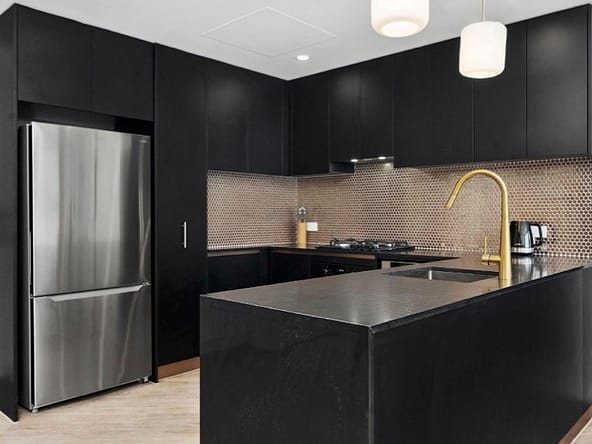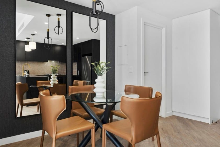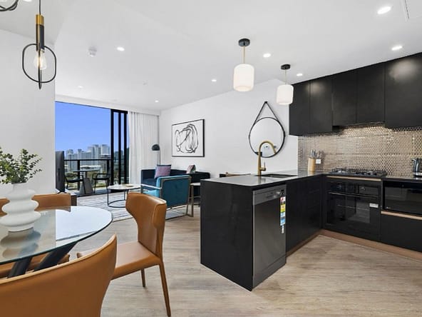 Each apartment is designed with contemporary aesthetics featuring spacious interiors that allow for ample natural light and offer expansive views. The residences are appointed with high quality finishes and fixtures, such as European-style flooring, plush carpets, and premium European appliances. Stone benchtops and ducted air conditioning further enhance the luxurious feel of the apartments.
