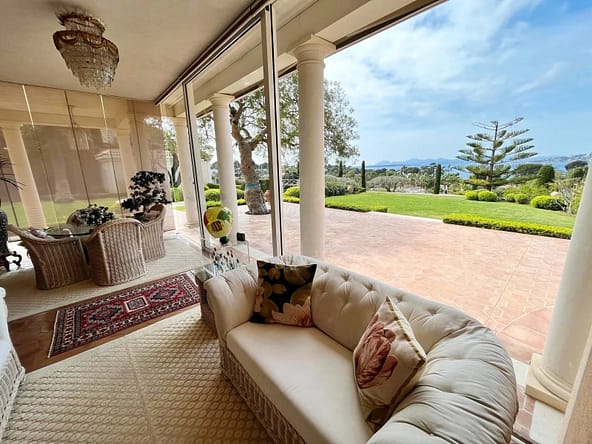 On the western slopes of Cap d'Antibes, in one of the most exclusive areas of the Côte d'Azur, this exceptional villa enjoys an absolutely spectacular panoramic sea view, enhanced by unforgettable sunsets over the Mediterranean.Set in the heart of a private landscaped estate of some 5,000 sqm, the property offers a rare living environment, where elegance, discretion and the Mediterranean art of living meet in perfect harmony.With a living area of around 555 sqm, the villa is seductive for its generous volumes, its omnipresent luminosity and the remarkable quality of its fittings. Spaces have been designed to offer absolute comfort, in an atmosphere that is both refined and warm.The property features six en-suite bedrooms, including a master suite with top-of-the-range amenities, as well as an independent guest apartment, guaranteeing autonomy and privacy.The exterior has been designed as a veritable showcase of well-being, ideal for relaxation and entertaining. An elegant heated swimming pool with pool house, surrounded by vast sun-drenched terraces, blends perfectly into the carefully tended landscaped Mediterranean garden. A wellness area with spa and sauna completes the ensemble, offering a relaxation experience worthy of the finest residences on the Riviera, while a pétanque court invites you to enjoy moments of conviviality in style.Featuring modern, high-end amenities, the villa combines aesthetics, functionality and absolute comfort. It is aimed at a discerning clientele in search of an exceptional primary or secondary residence, while offering strong rental potential thanks to its privileged location on Cap d'Antibes.The property also features secure garages and parking.