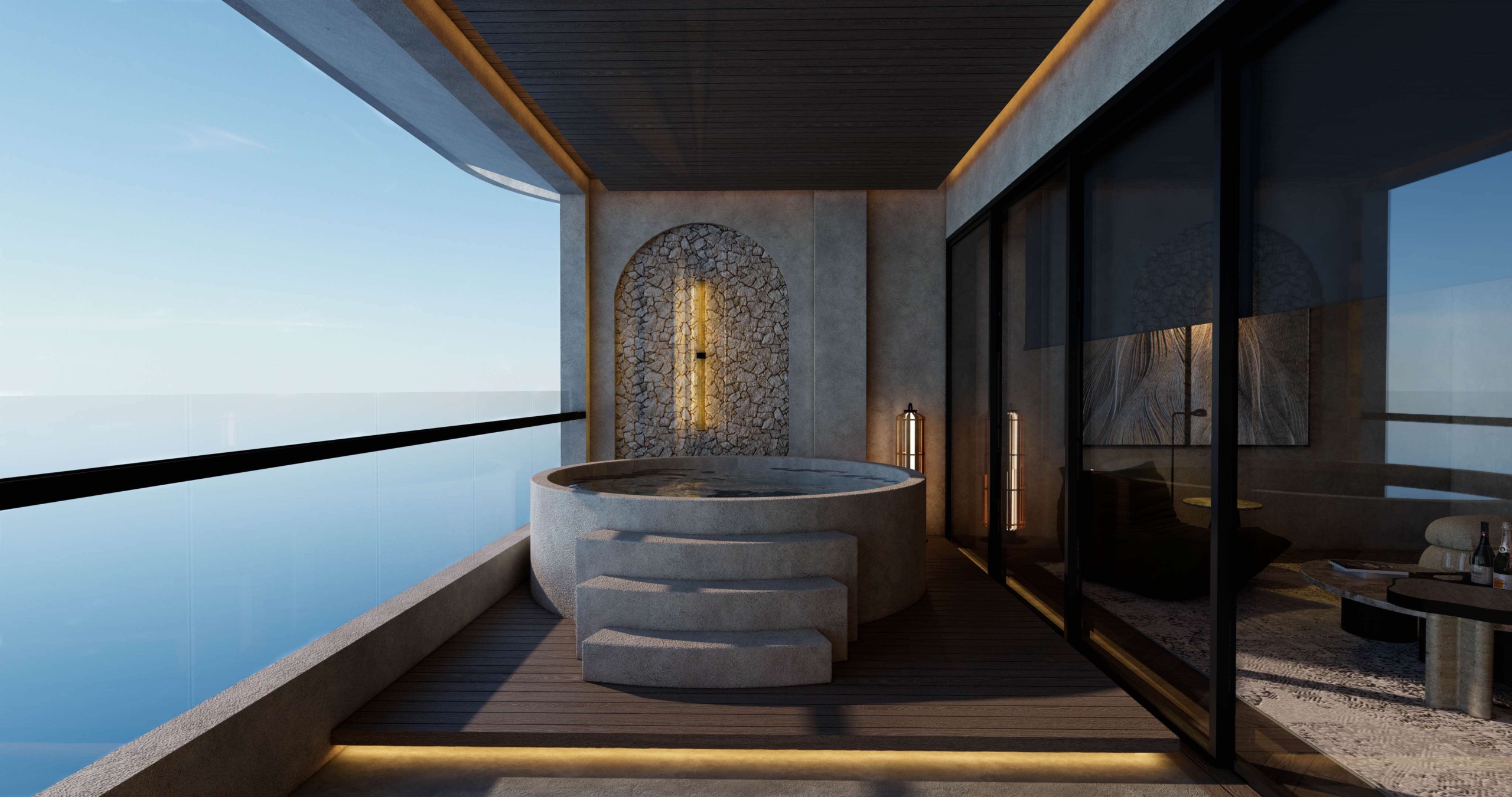 The project features 34 luxury apartments, each designed with timeless aesthetics, sustainability, and harmony with nature. Every unit offers unobstructed ocean views, private jacuzzis, and spacious interiors that merge modern design with comfort.