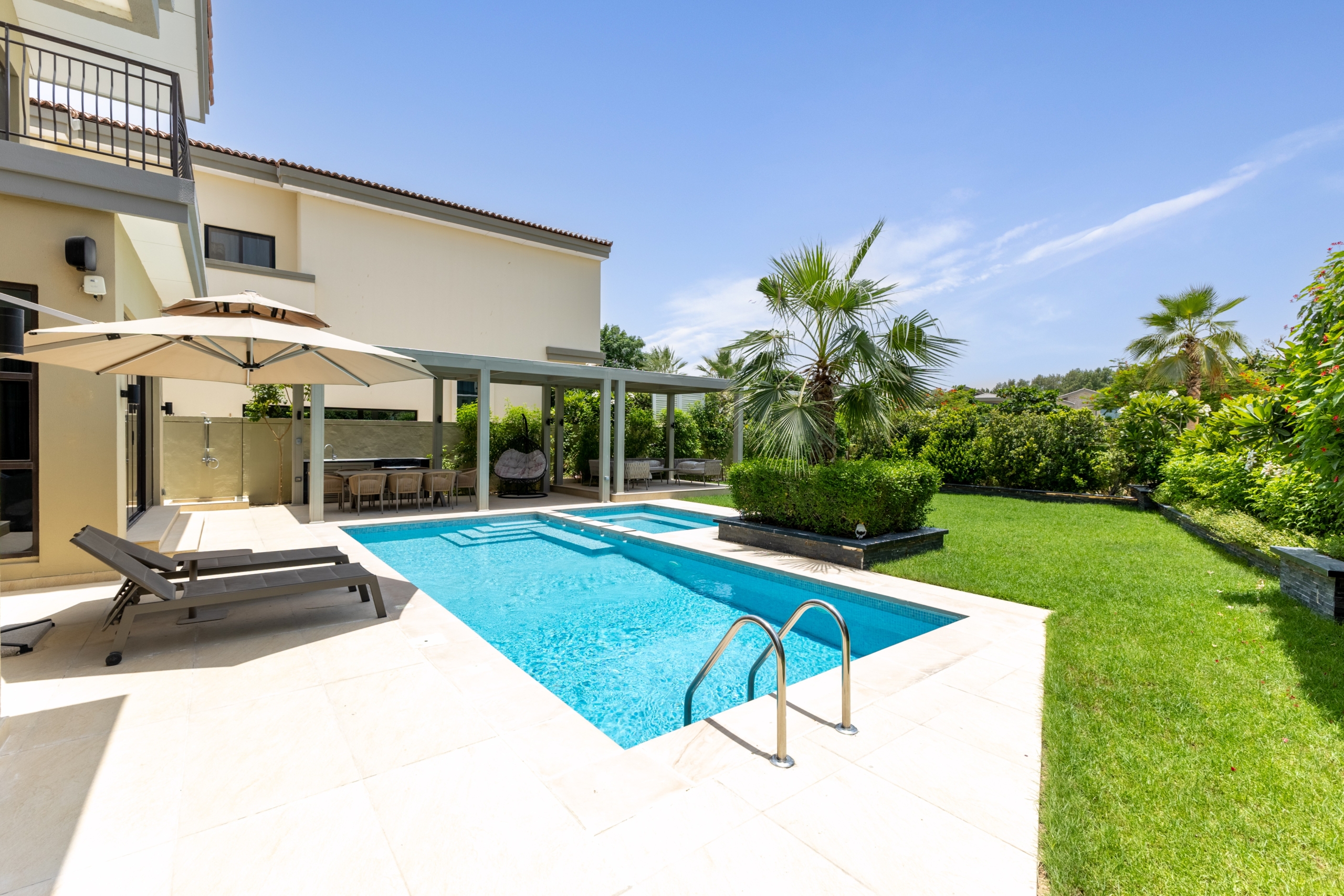 Fairway Homes is proud to present this luxurious 5-bedroom plus maids villa with a basement, located in the Sanctuary Falls, Jumeirah Golf Estates. Set on a spacious plot, this beautifully upgraded home offers a perfect balance of elegance, comfort, and privacy and features high-end upgrades throughout.Key Features:Bedrooms: 5Live In Accommodation: MaidsBuilt Up Area: 7,131 sqftProperty Plot: 9,459 sqftView: Lake & Landscaped GreenarySpread across a spacious floor plan, with an open plan kitchen and seating area, this villa has been meticulously designed to meet the needs of modern family living, with multiple living and entertainment zones, both indoors and outdoors. From the moment you enter, you're greeted with natural light, high ceilings, and refined finishes that create an elegant yet welcoming atmosphere.The home features five large en-suite bedrooms, offering ample space and comfort for families of all sizes. The master suite is a true retreat, with a walk-in closet, private balcony, and a luxurious spa-style bathroom. One of the standout features of this villa is its huge basement, which includes a fully equipped cinema room, ideal for movie nights, gaming, or entertaining guests. The garden has been beautifully upgraded, creating a serene outdoor sanctuary with lush landscaping, a BBQ and seating area with plenty of space for children to play or for entertaining on weekends.For more details about this home, kindly reach out to the listing agent who will be more than happy to assist.Please note all measurements and information are given to the best of our knowledge. The listing agent and/or brokerage accept no liability for any incorrect details.