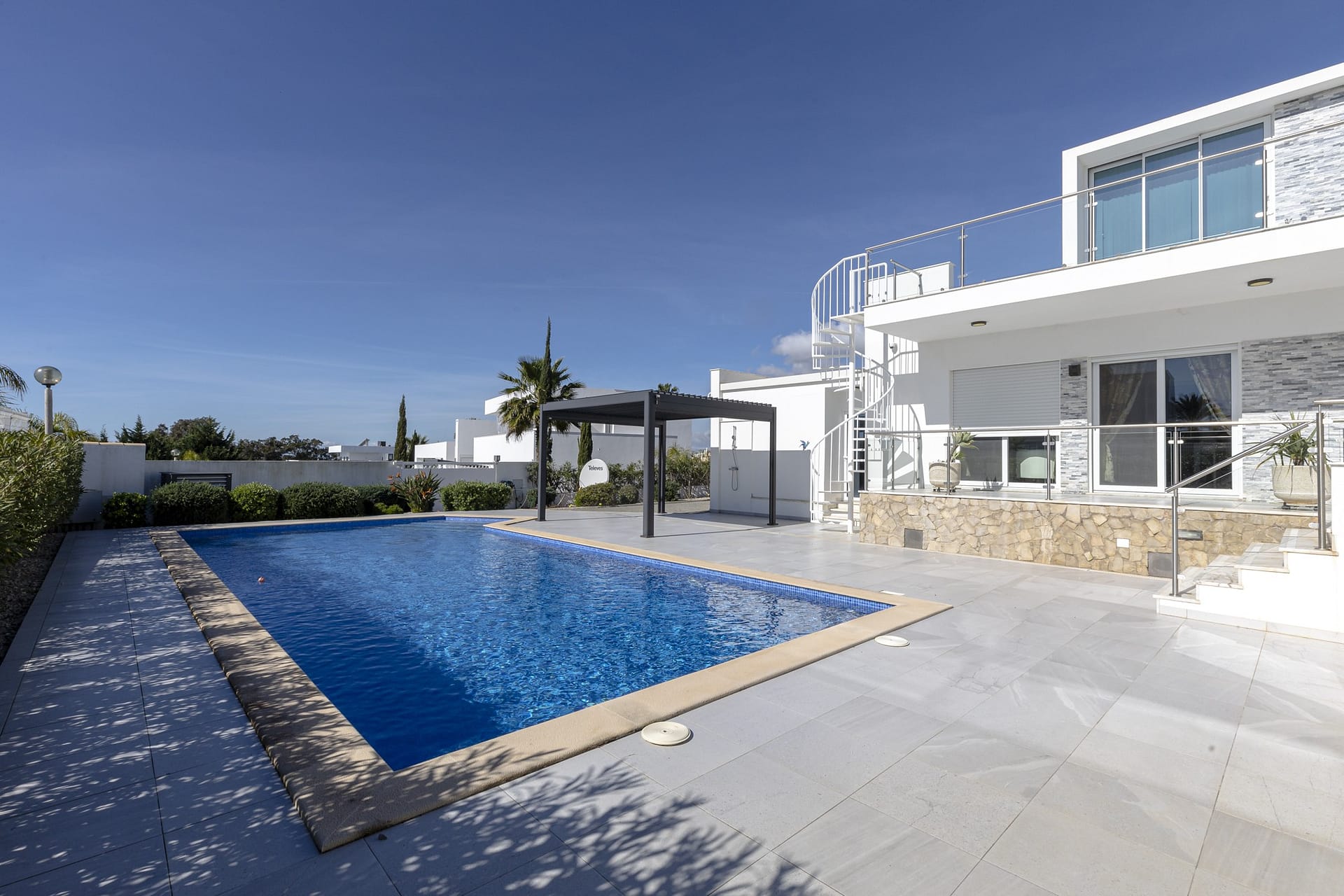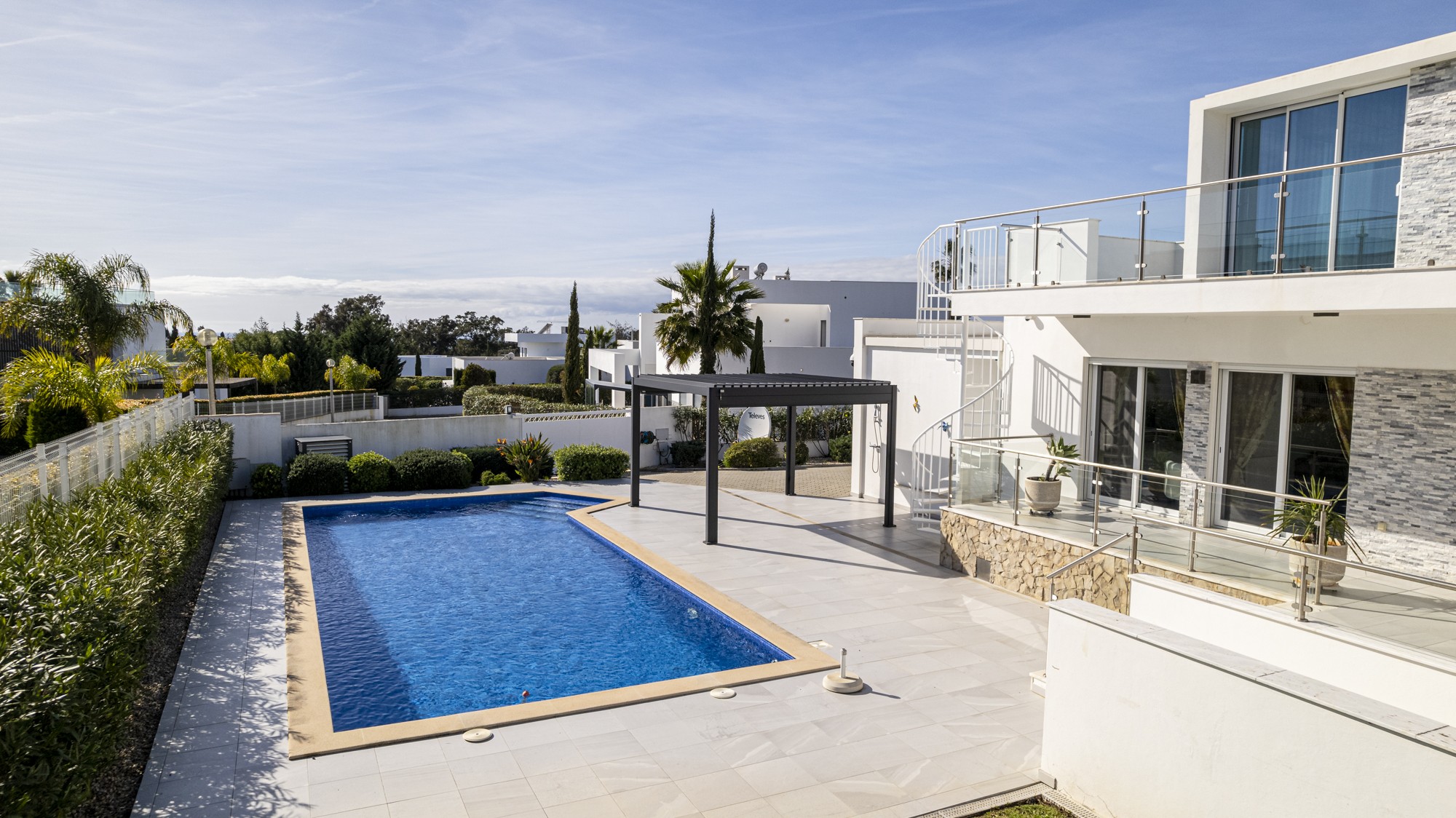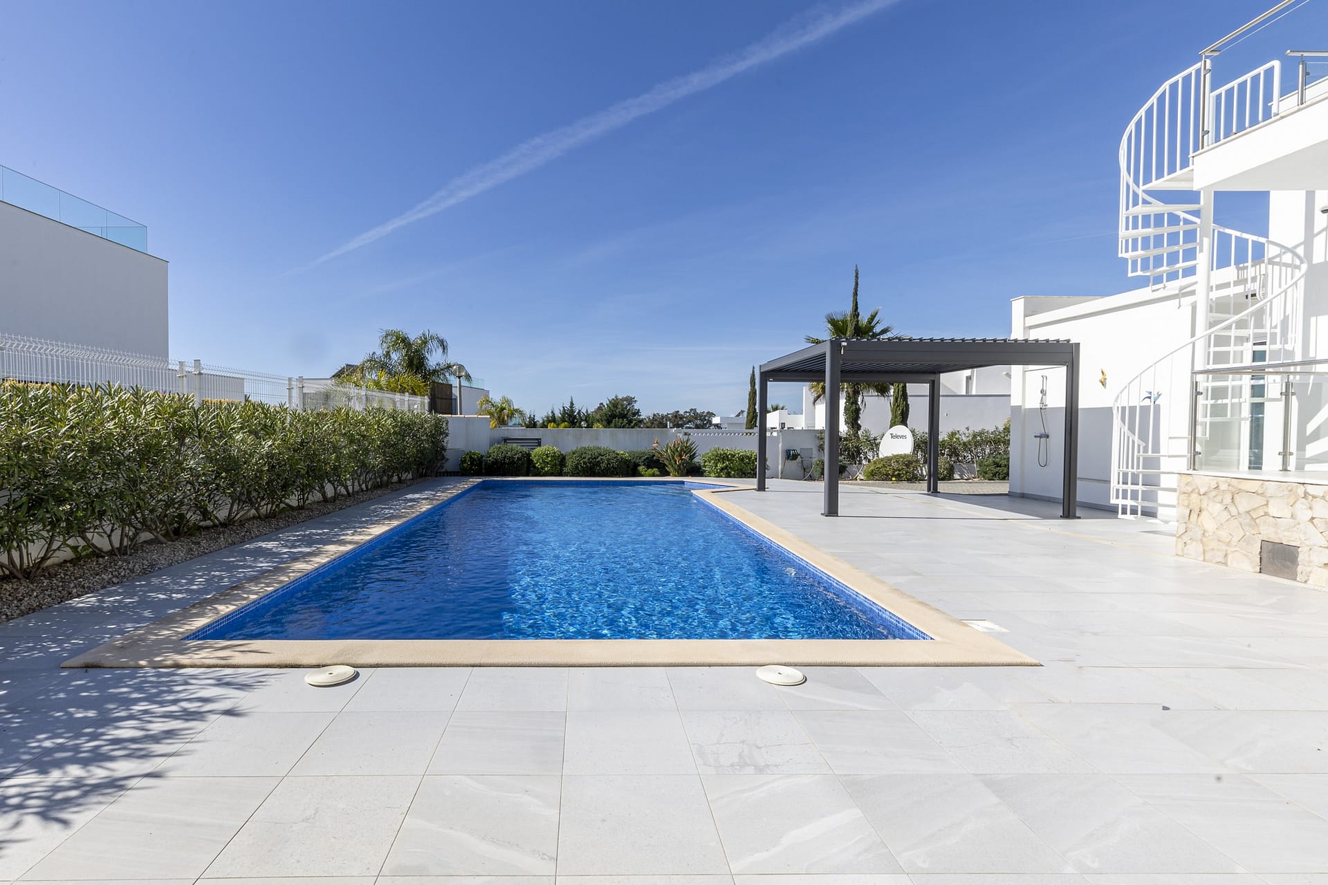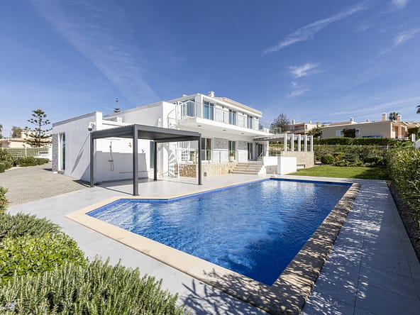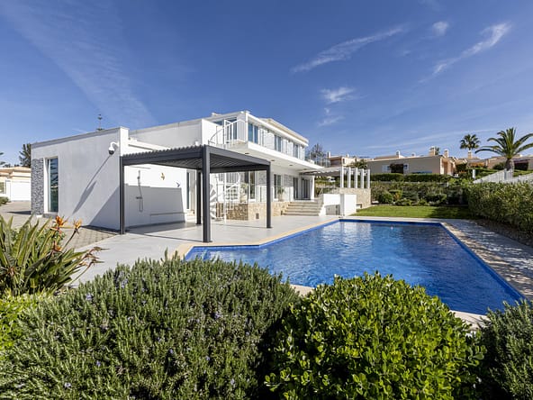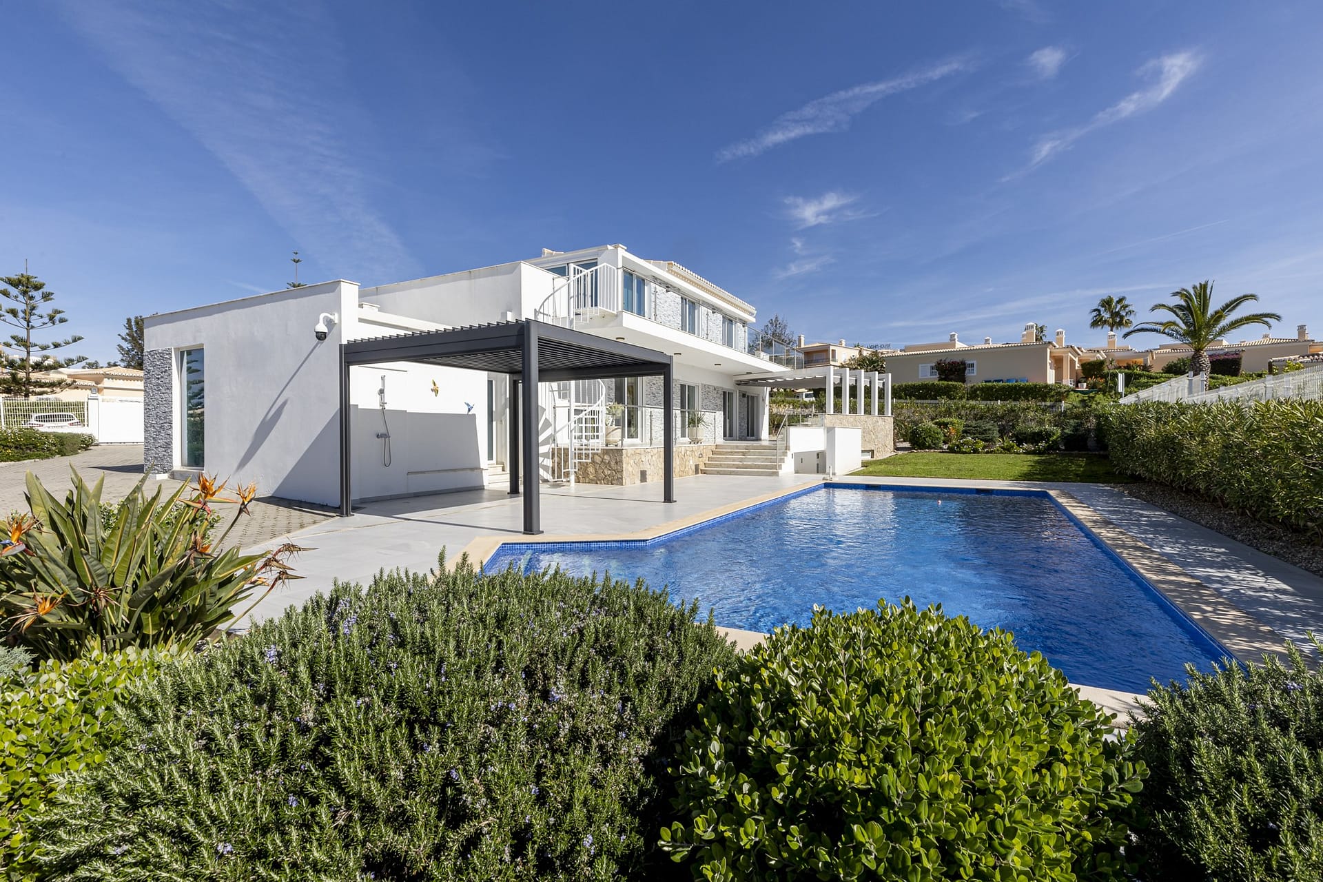 Modern Luxury Villa with Sea Views in CarvoeiroBuilt in 2018, this contemporary 4-bedroom villa combines style, comfort, and smart home technology. Featuring spacious en-suite bedrooms, a bright living room with wood-burning stove, and a fully equipped kitchen, it offers seamless indoor-outdoor living. Enjoy a heated saltwater pool, south-facing balcony with panoramic sea views, landscaped garden, and multiple terraces for al fresco dining. With underfloor heating, air conditioning, home automation, video surveillance, and an A+ energy rating, this property is both secure and energy efficient. Ideally located in a peaceful residential area, its within walking distance of beaches and restaurants, and just a short drive to golf courses, schools, and Faro Airport.