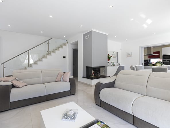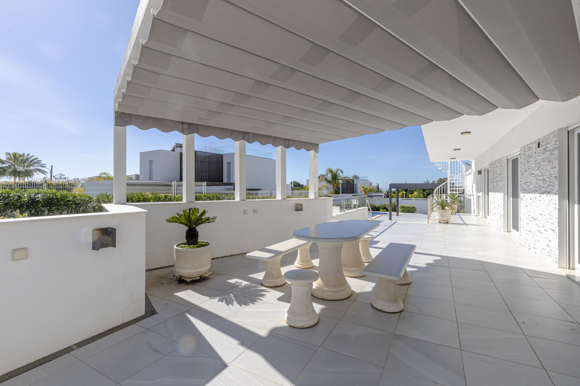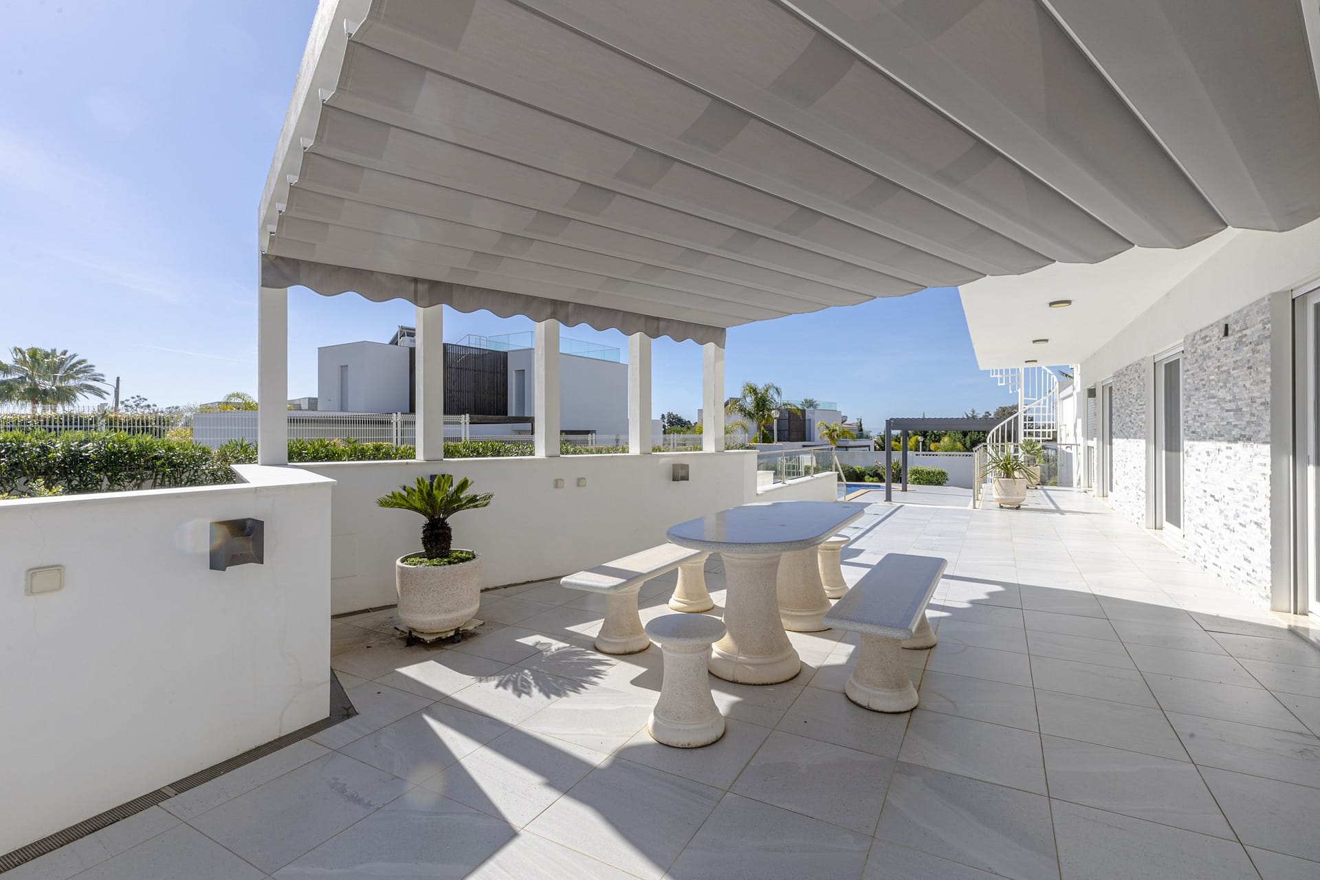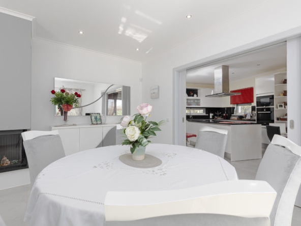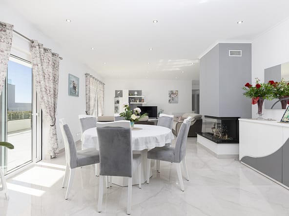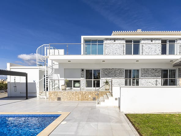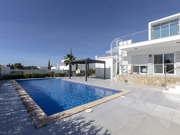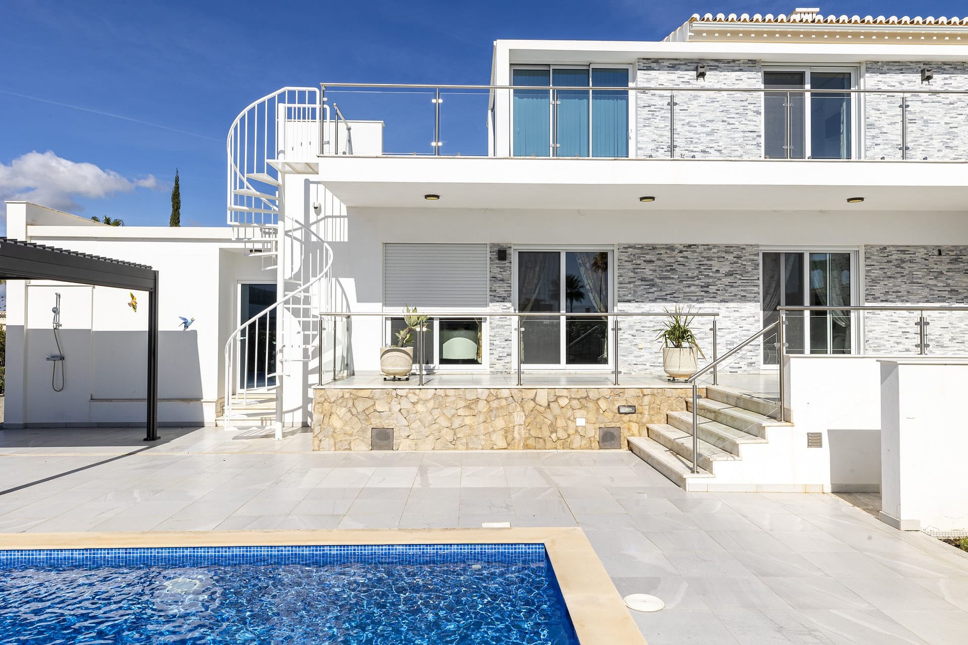 Modern Luxury Villa with Sea Views in CarvoeiroBuilt in 2018, this contemporary 4-bedroom villa combines style, comfort, and smart home technology. Featuring spacious en-suite bedrooms, a bright living room with wood-burning stove, and a fully equipped kitchen, it offers seamless indoor-outdoor living. Enjoy a heated saltwater pool, south-facing balcony with panoramic sea views, landscaped garden, and multiple terraces for al fresco dining. With underfloor heating, air conditioning, home automation, video surveillance, and an A+ energy rating, this property is both secure and energy efficient. Ideally located in a peaceful residential area, its within walking distance of beaches and restaurants, and just a short drive to golf courses, schools, and Faro Airport.