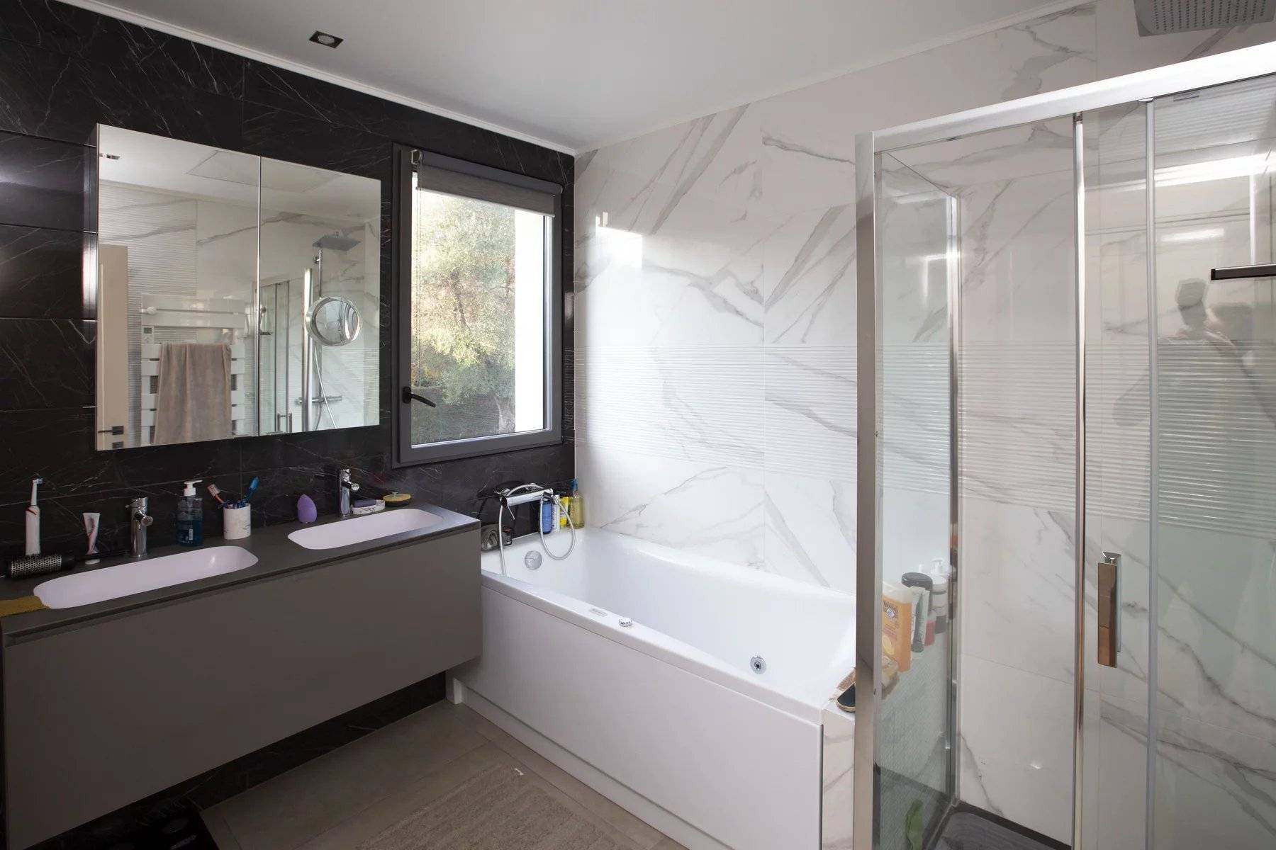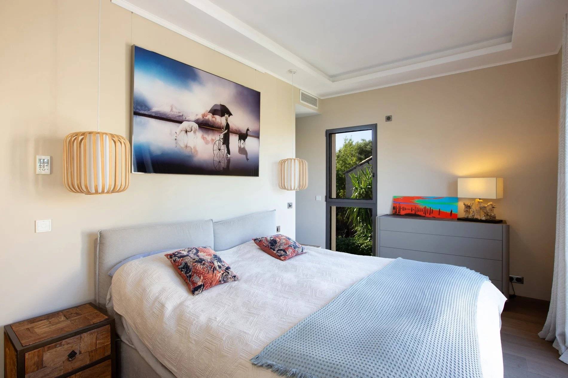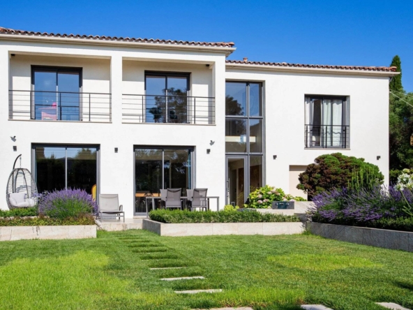 In a quiet cul-de-sac in Antibes, this expansive property offers a modern main house and a separate guest house on a beautifully landscaped 900 m² flat plot. Perfectly sheltered from noise, this residence combines space, privacy, and comfort.