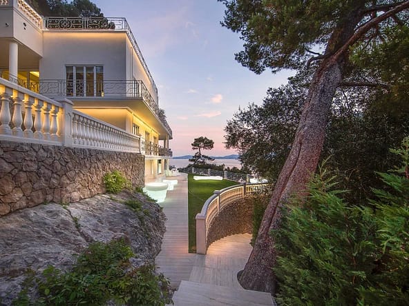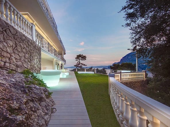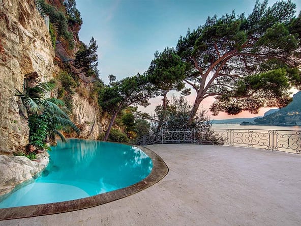 Splendid luxury villa in a commanding position on Mala Beach with immediate beach access. This exceptional property offers a living area of 588 m² on a vast plot of approximately 4600 m². Spread across 4 levels, the villa features large terraces with breathtaking sea views on every level.The villa includes a spacious living/dining area of about 100 m², a fully equipped kitchen, TV room, library, office, and a wine cellar. It boasts 3 master bedrooms, each with a dressing room, en-suite bathroom, and private terrace, as well as 4 guest bedrooms with en-suite bathrooms and private terraces.The property is complete with a luxurious SPA, bar, party terrace, swimming pool, 2 Jacuzzis, a gym, and sauna. It also offers a garage for 2 vehicles, 12 parking spaces, a security room, and a mooring pontoon with direct yacht access. Just 20 minutes from Nice airport.Features Air-conditioning Internet Jacuzzi Furnished Irrigation sprinkler Fence Outdoor lighting Alarm system Safe Electric gate Video security Videophone Swimming pool SaunaDistance Airport 20 minutes Sea 10 metres Beach 10 metres