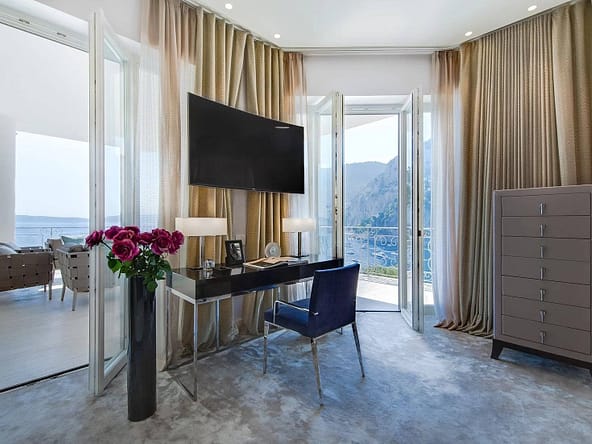 The property is complete with a luxurious SPA, bar, party terrace, swimming pool, 2 Jacuzzis, a gym, and sauna. It also offers a garage for 2 vehicles, 12 parking spaces, a security room, and a mooring pontoon with direct yacht access. Just 20 minutes from Nice airport.