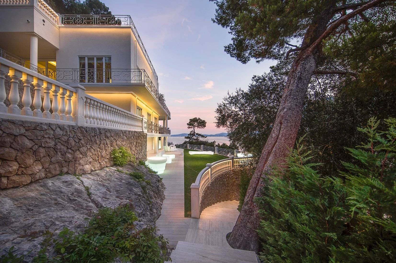Splendid luxury villa in a commanding position on Mala Beach with immediate beach access. This exceptional property offers a living area of 588 m² on a vast plot of approximately 4600 m². Spread across 4 levels, the villa features large terraces with breathtaking sea views on every level.