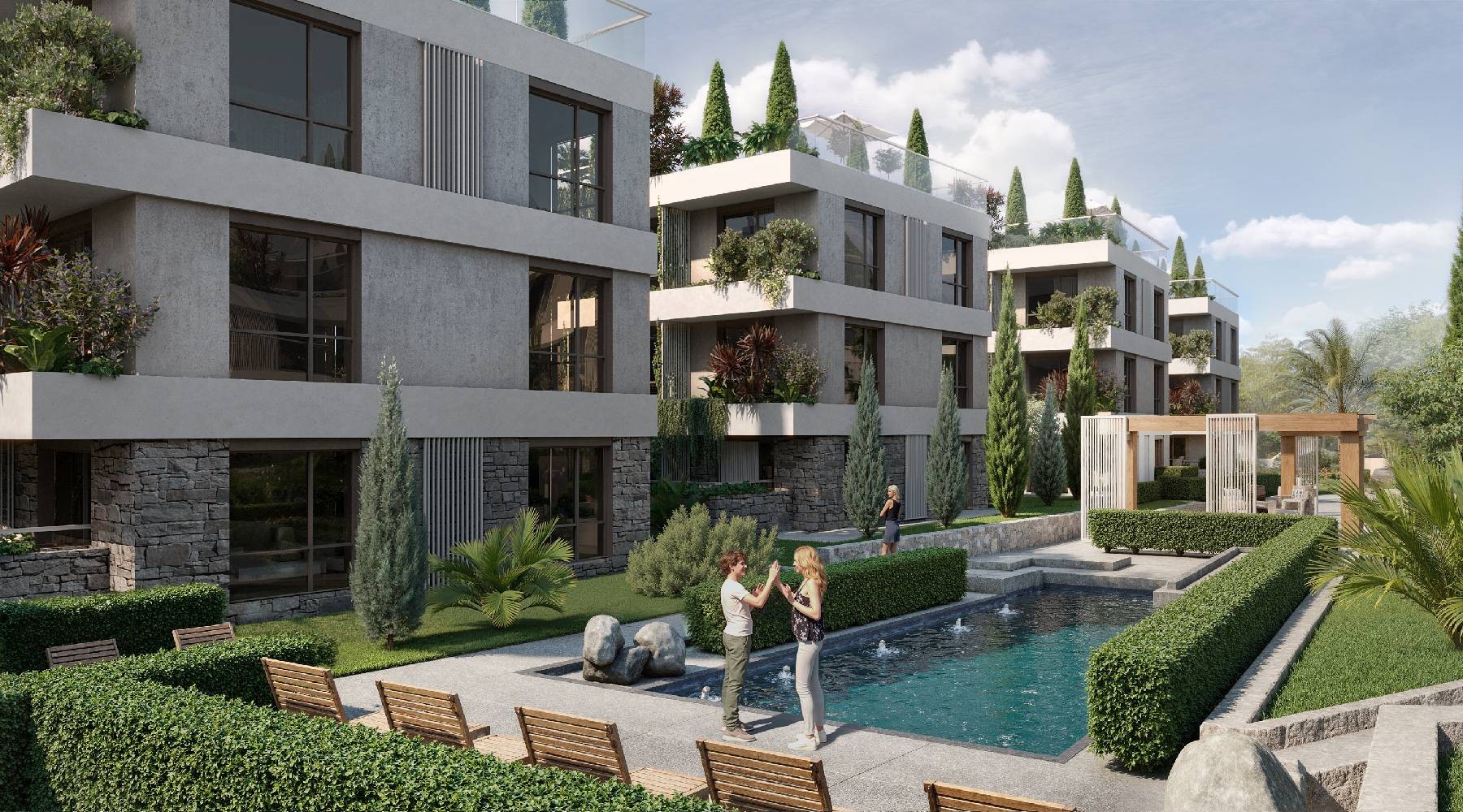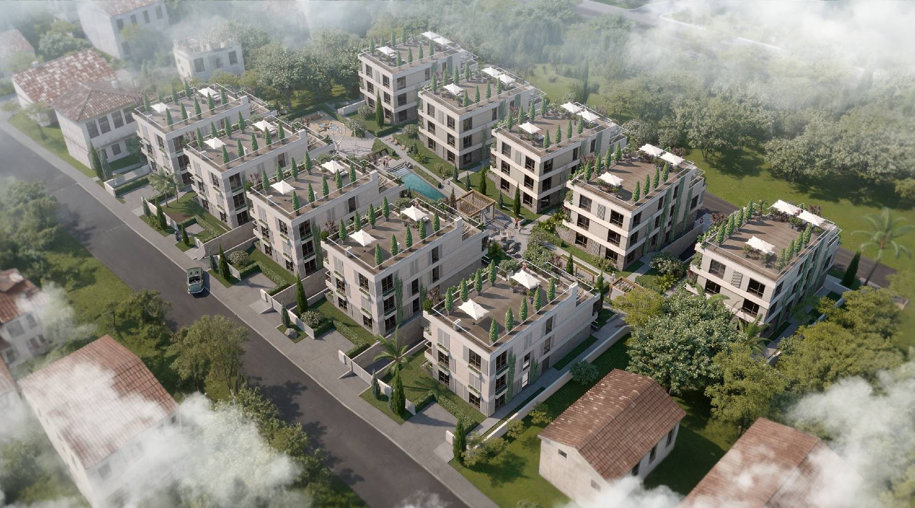 This modern two-bedroom penthouse is located in a brand-new residential complex in the very heart of Tivat, just steps from a green park and the beach. Combining functionality, comfort, and style, the penthouse is designed for urban living while offering private outdoor spaces for relaxation and enjoyment of Montenegros coastal lifestyle.The apartment spans 216.3 m, including two bedrooms, two bathrooms, a bright and spacious kitchen-living room with dining and lounge areas, and a hallway with storage space. The penthouse also features two terraces and a balcony, as well as a private rooftop terrace, perfect for sunbathing, outdoor dining, or creating a small rooftop garden. Large windows throughout the apartment fill the space with natural light and highlight the modern, high-quality finishes.Key Advantages:Private terraces and rooftop area for outdoor living and relaxation.Modern style with premium finishes and functional layout.Quiet and green surroundings, yet close to complex amenities and city center.Convenient storage space and well-planned indoor layout for comfort and privacy.Complex Amenities:Swimming pool and relaxation terraces.Childrens and sports playground, outdoor workout area.Barbecue and community lounge areas.Extensive landscaped gardens with decorative plants and trees.Underground parking, guest parking, and gated, secured territory with video surveillance.Additional Information:Only 400 meters to the sea.Payment installments available, offering flexible purchase options.This penthouse is perfect for those seeking a stylish, modern home in Tivat, where urban comfort, luxury finishes, and Mediterranean charm come together in a secure and well-equipped environment.