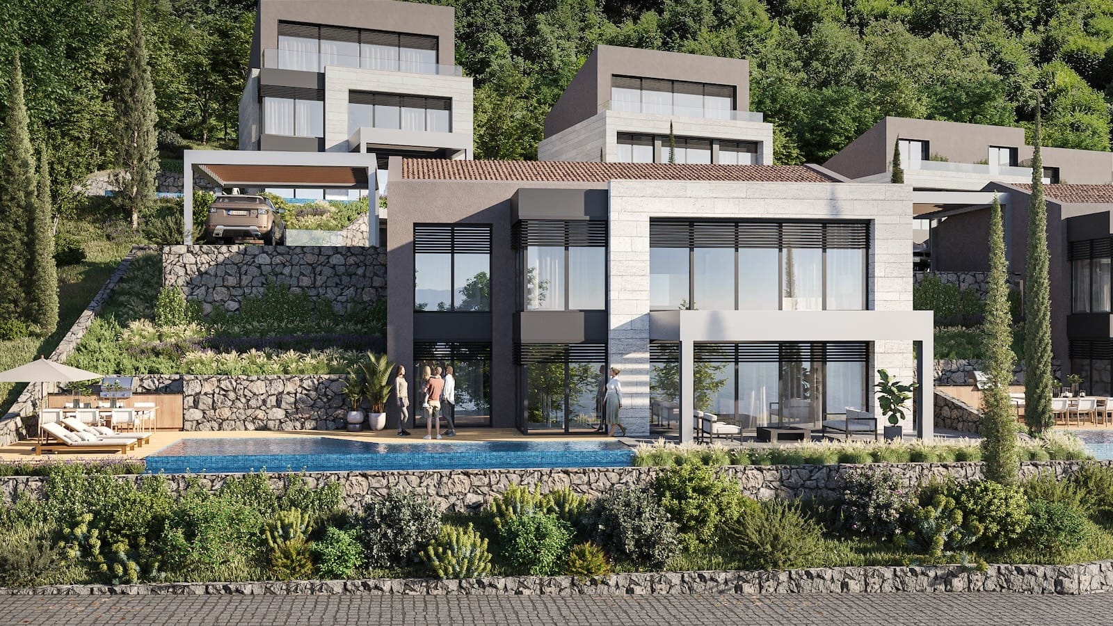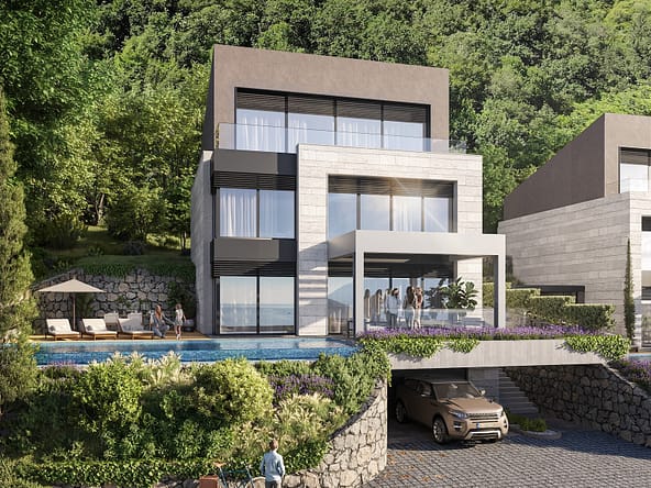 5-Bedroom Luxury Villa in Dobrota, Kotor Bay.A modern luxury 5-bedroom villa under construction, located in an exclusive gated complex of just six villas in Dobrota, one of the most prestigious areas of the Bay of Kotor. Only 300 meters from the sea, the villa offers breathtaking panoramic views of the Adriatic Sea, Kotor Bay, and the surrounding mountains.Set on a spacious 554 m plot, the villa features a heated infinity pool, a landscaped courtyard with a patio, outdoor dining area and shower, as well as a garage for two cars. Designed to combine contemporary comfort with traditional Montenegrin architectural elements, the property provides a refined and elegant living environment.The villa spans two levels:Ground floor: a spacious living room, fully equipped Italian-design kitchen with quartz countertops, dining area, guest toilet, and a master bedroom with en-suite bathroom. Direct access to the pool and courtyard enhances indooroutdoor living.First floor: four generously sized bedrooms and three bathrooms.Built using premium materials, the villa will feature high-end flooring and ceramic tiles, top-quality appliances (Bosch, Miele or equivalent), fully fitted bathrooms, and electric underfloor heating throughout.The developer offers flexible, interest-free payment plans of up to 4 years, with a down payment of only 20%.Located near the historic Old Town of Kotor, this villa offers an exceptional lifestyle opportunity, blending modern luxury with Montenegros rich cultural heritage and natural beauty. It is an excellent choice for both private residence and investment, benefiting from strong rental demand and long-term property value growth in Kotor Bay.
