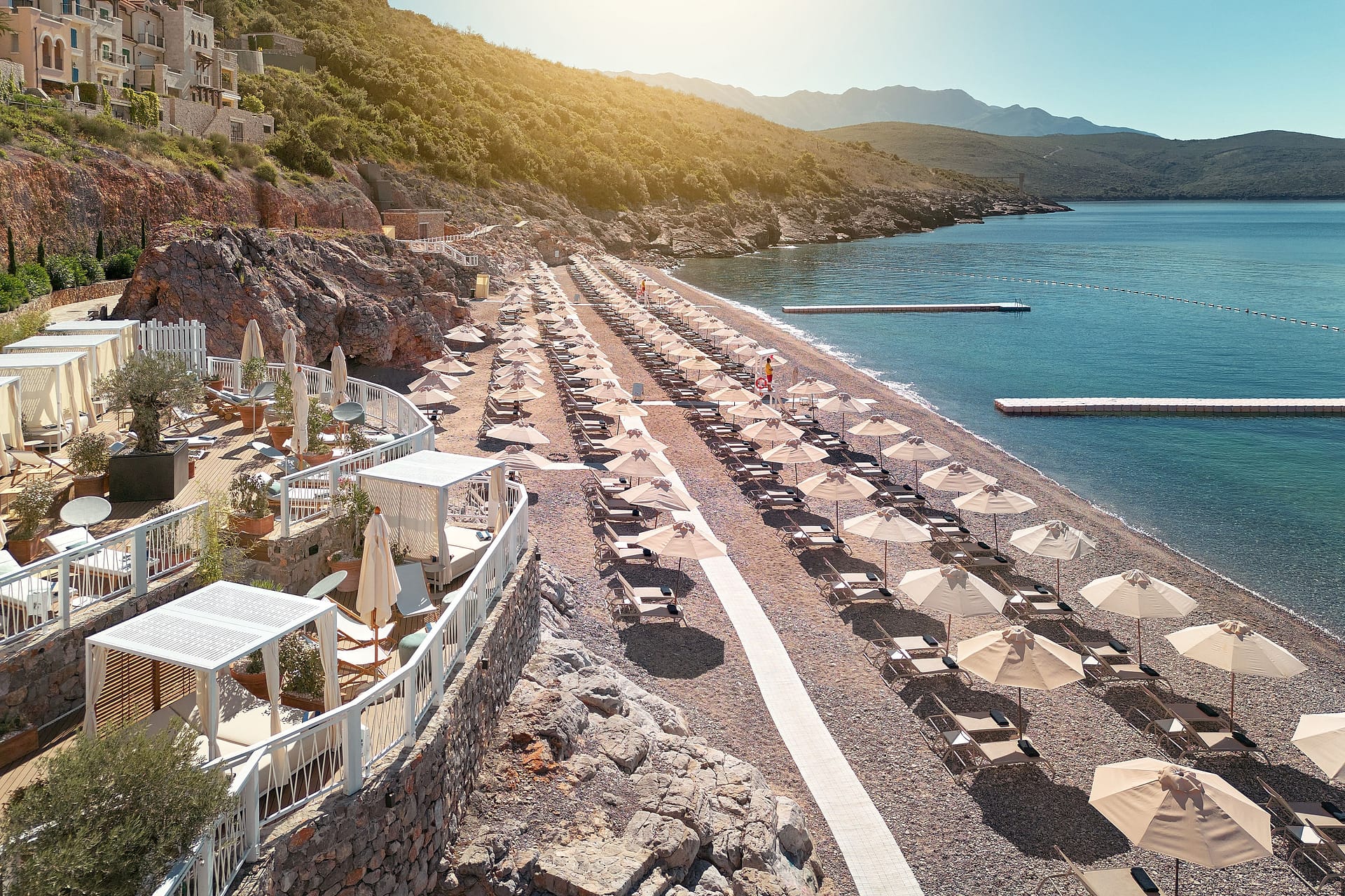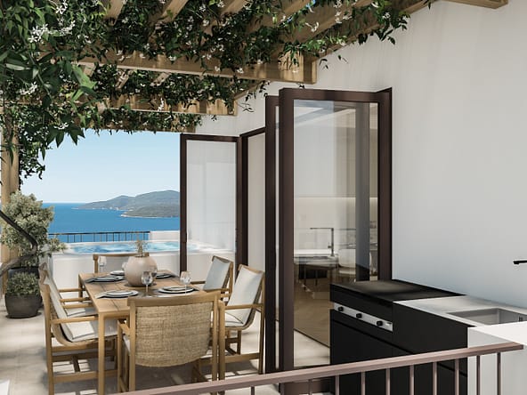 Set in Lutica Bays Horizon neighbourhood, these two-bedroom apartments are crafted to connect interiors with the outdoors, with private terraces opening to uninterrupted Adriatic views. Open-plan kitchens, dining, and living areas are complemented by built-in wardrobes and underfloor-heated bathrooms, while ducted air conditioning and refined shading systems provide comfort in every season. Balconies and terraces are positioned to maximise privacy and frame the sea and sky. Discreet faade lighting brings out the details of Horizons Mediterranean architecture, giving each residence a distinctive presence. Residents also enjoy a communal swimming pool and one underground parking space with a long-term lease.Horizon is an exclusive elevated residential neighbourhood overlooking the Adriatic Sea and Lutica Bay marina. Warm Lutica stone homes with Mediterranean shutters, arched porticos, and landscaped terraces are framed by olive and lemon trees, offering uninterrupted sea views. Residents enjoy tiered pool decks, a private Clubhouse, dedicated beach areas, and priority services across the destination. Horizon offers a life reimagined, where every home is graced with Lutica Bays finest horizon views over the Adriatic.