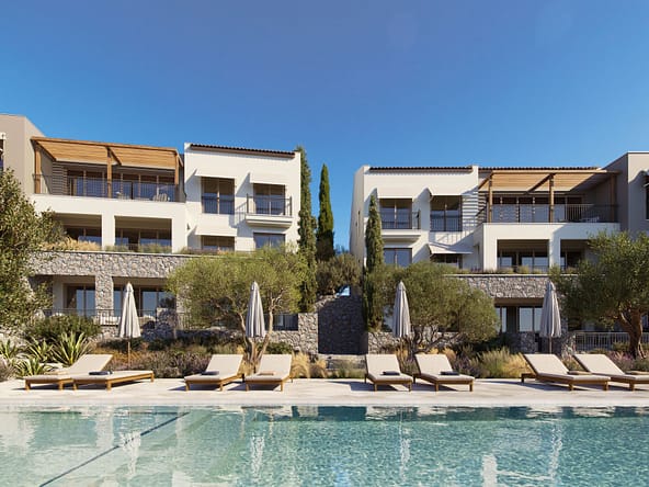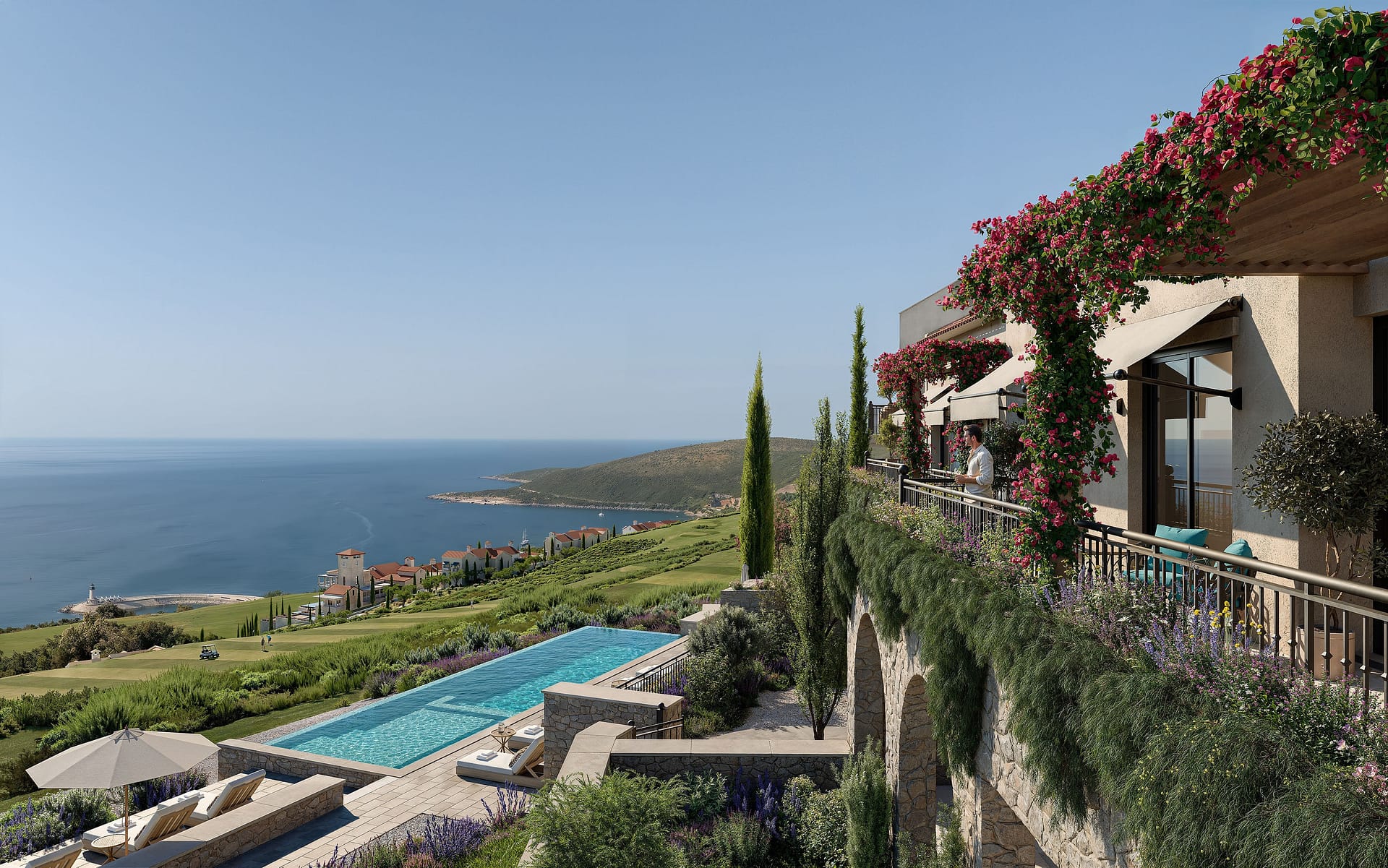 Positioned above the Adriatic Sea and overlooking the first two holes of Lutica Bays 18-hole golf course, our 2-bedroom golf apartments combine privacy, functionality, and refined Mediterranean design. Located in the most exclusive part of The Peaks, they offer from 87 m of internal area, terraces up to 30 m, and select units with 42 m exclusive usage areas. Open-plan living extends to wraparound balconies, while bespoke kitchens feature high-quality appliances. Residents enjoy a shared pool, parking, and guvno, a historical communal space reimagined as an outdoor seating area. Optional upgrades include parquet floors, towel heaters, and matte black Hansgrohe fittings.The Peaks is Lutica Bays most prestigious neighbourhood to date, featuring a limited collection of villas, townhouses, and apartments gently carved into the rugged topography of the natural landscape.These residences are set alongside Montenegros upcoming 18-hole championship golf course, signature design by sporting legend Gary Player. The course will join an elite group of under 10% of the worlds golf courses to offer a sea view from every hole, and is designed for players of all levels, destined to become a must-play for golf enthusiasts worldwide.