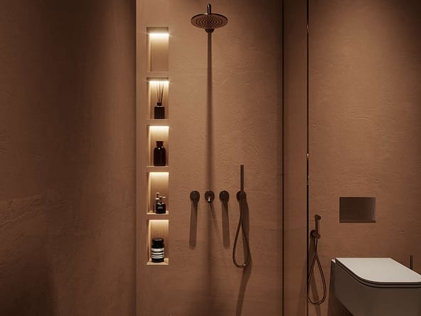 Large floor to ceiling windows, natural materials, earthy tones and distinctive textured facades all bring this development together to create a contemporary design.