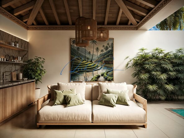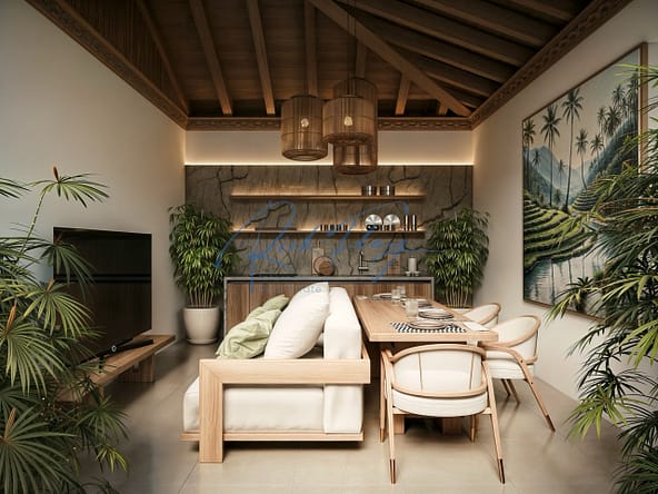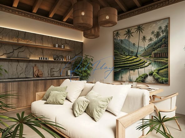 Modern apartments and villas with a Balinese touch and panoramic windows overlooking the bay.