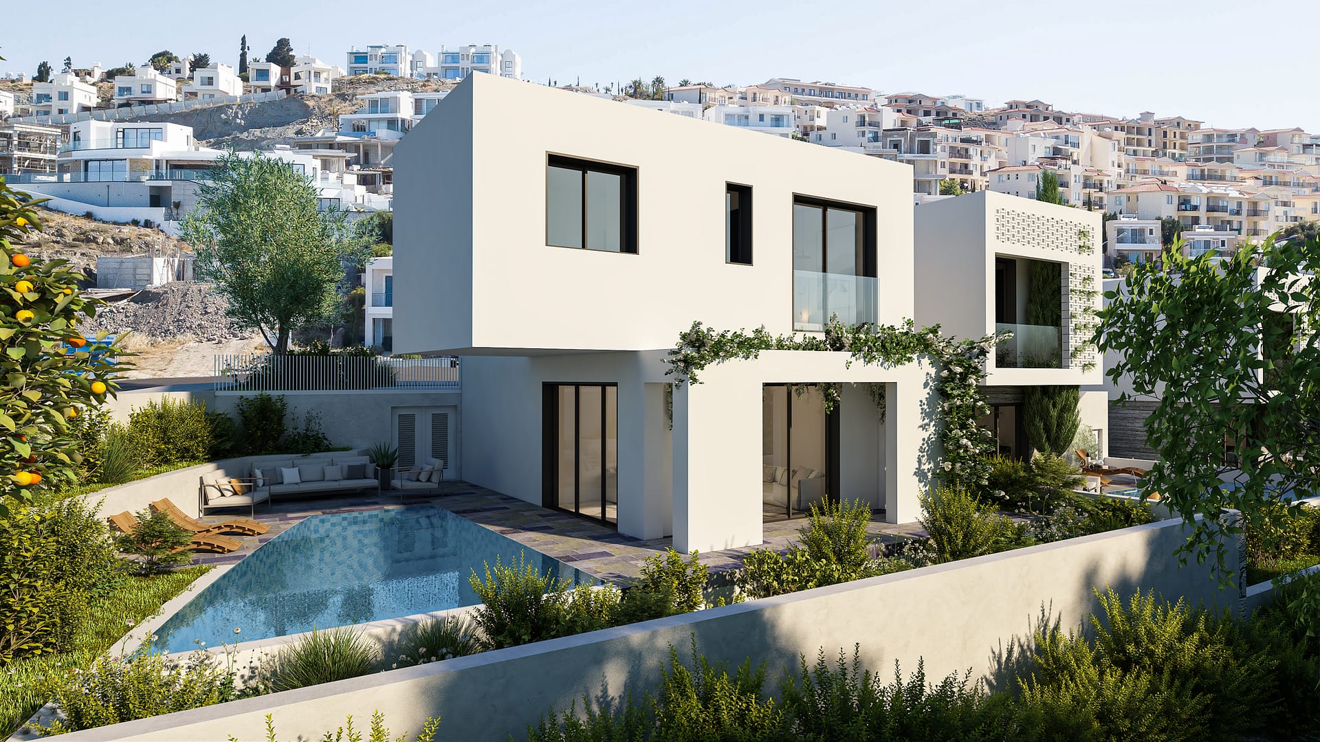 This unique development situated in Choloraka Village on the outskirts of Paphos is characterized by appealing modern architecture with spacious and comfortable areas in green surroundings.