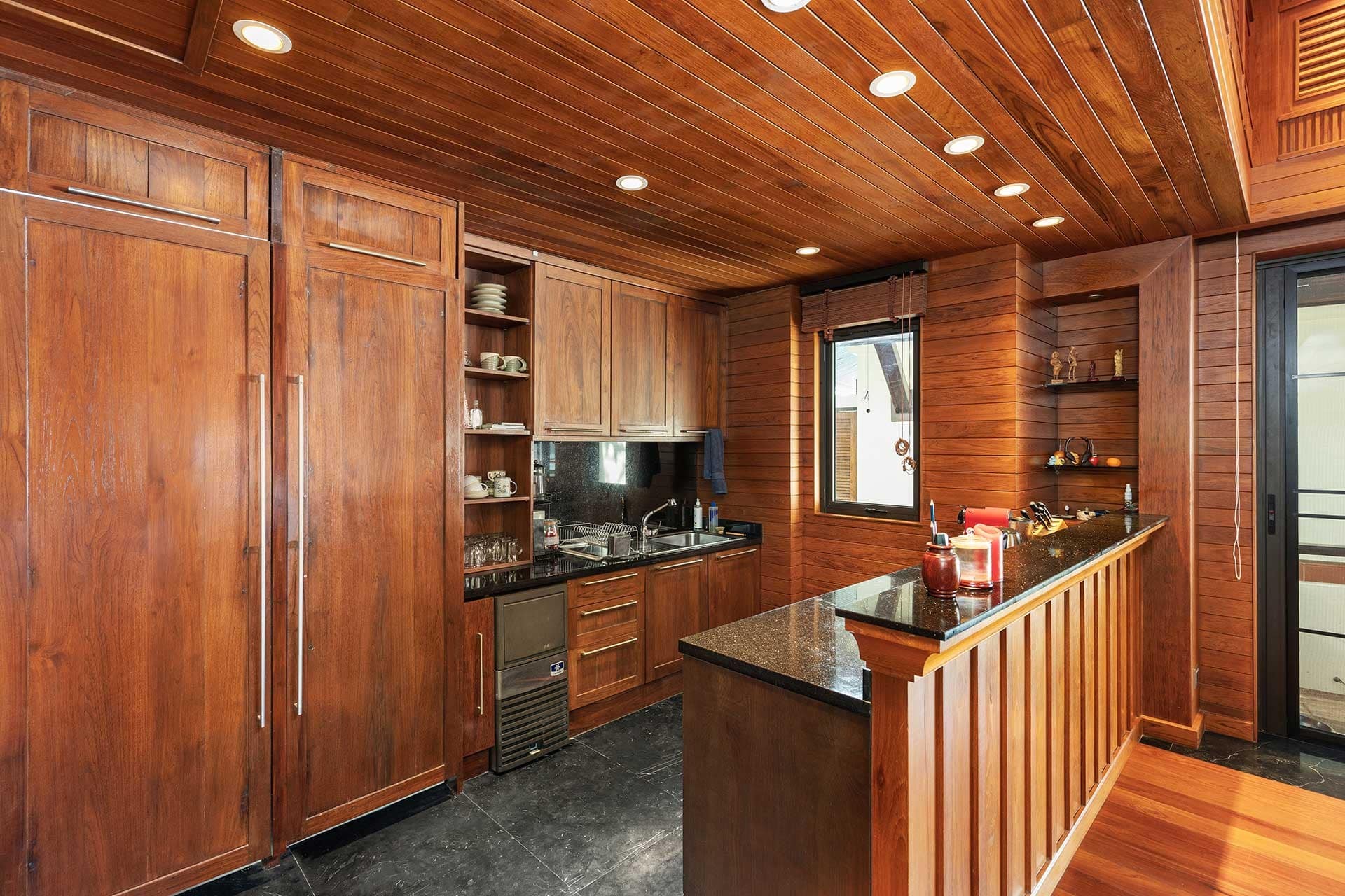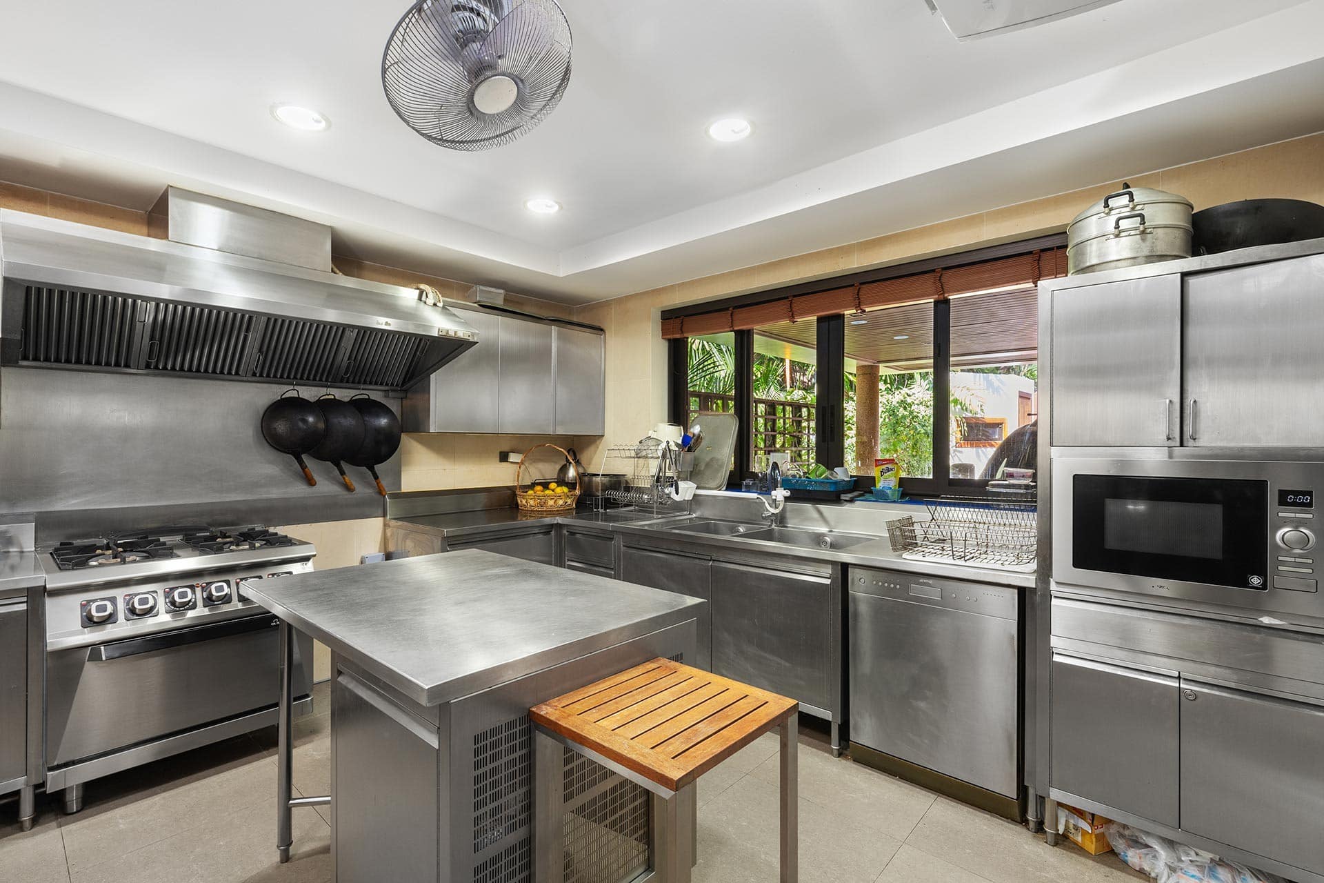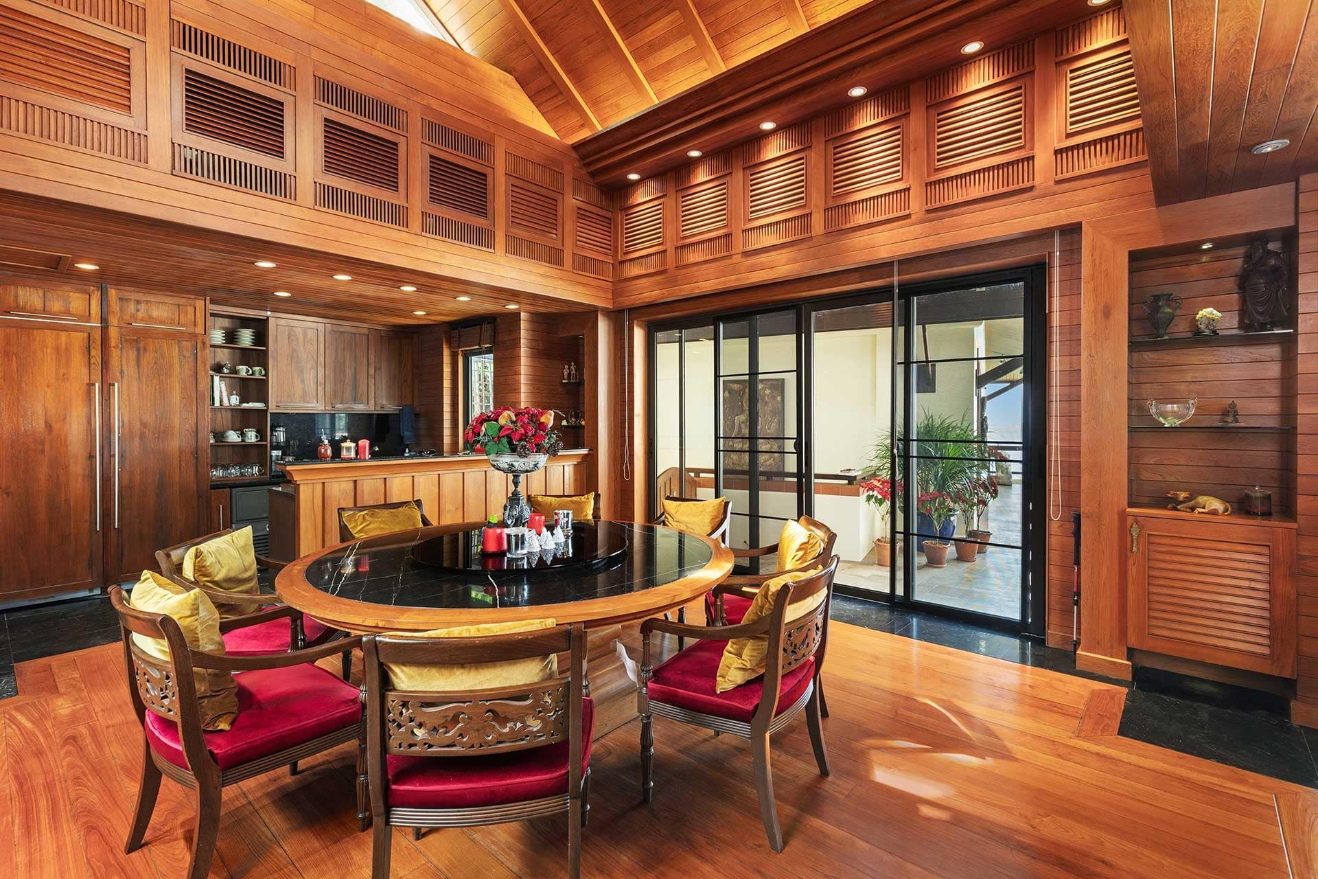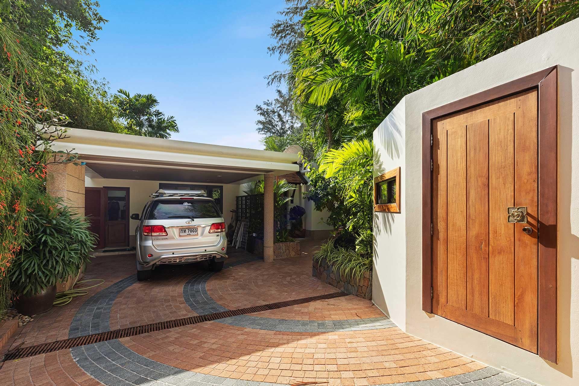 This stunning oceanfront villa is nestled within an exclusive private estate, just a short walk from Phukets renowned Kata and Kata Noi beaches. Offering breathtaking 180-degree panoramic sea views, the villa boasts five bedrooms and expansive open-plan living that flows seamlessly into outdoor areas featuring a private infinity-edge pool, spacious decking, a shaded sala, and manicured tropical gardens with direct ocean access.Arriving at Baan Kata Villa B6, guests are greeted by a serene orchid garden and a pond with cascading water, setting the tone for the tranquil luxury within. The villas distinctive U-shaped layout spans two main floors. The upper level includes the master suite and guest bedrooms, separated by the main living and dining areas. Below, the lower level hosts an entertainment room, outdoor dining space, a study/optional bedroom with ensuite, a library, and another lounge beside a natural stone waterfall and pathway to the sea.Interiors reflect elegant Thai craftsmanship, with teak-paneled walls, custom artwork, and quality furnishings. The dining area features a 10-seat marble-top table, while the living room showcases velvet sofas, built-in bookshelves, and artistic wooden panels by a renowned Thai artist. Large glass doors frame lush garden views throughout.A sea-facing study with ensuite opens to an alfresco sala and lounge overlooking tiered gardens and a granite waterfall. This secure, private villa enjoys a prime location near world-class dining, boutiques, and vibrant village lifeall within easy walking distance.