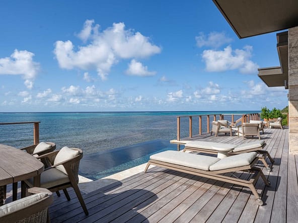 Positioned right at the waters edge with zero setback, Ocean Villa 3 is a calming seaside retreat unlike any other across the Caribbean.Sporting a slightly large floor plan than its neighbor Ocean Villa 2, this four-bedroom developer designed home offers an entrance hallway, convertible office, owners lock-off closet and expanded pool area. All while maximizing the incredible ocean views.Actively under construction and offered brought to completion, this villa is scheduled to be move-in ready in December 2024.