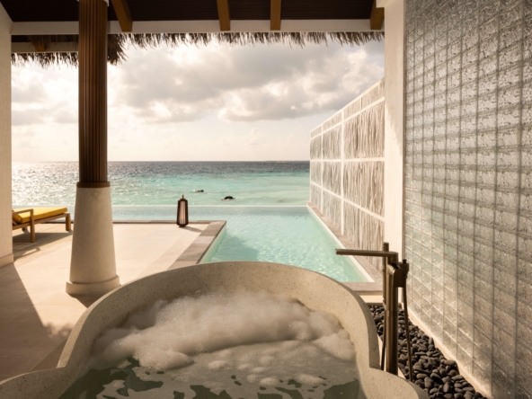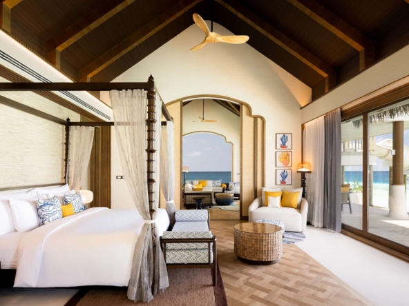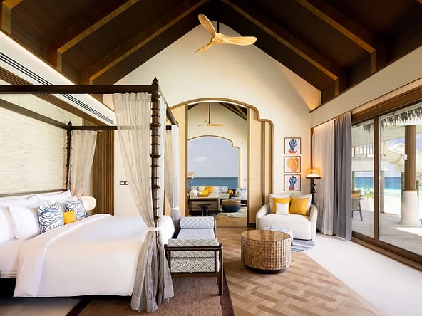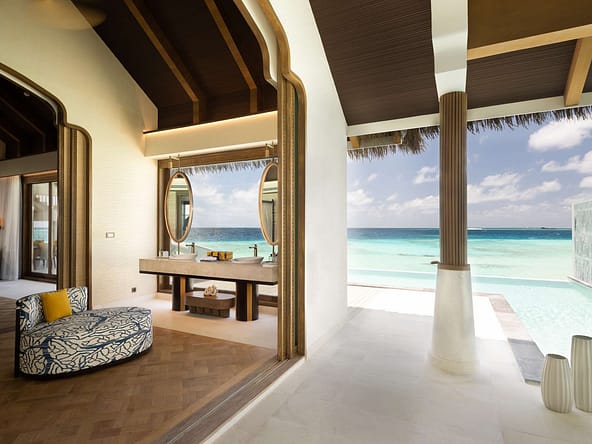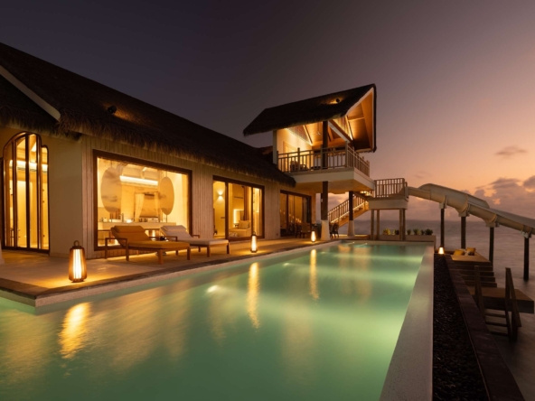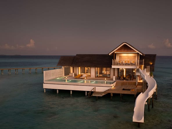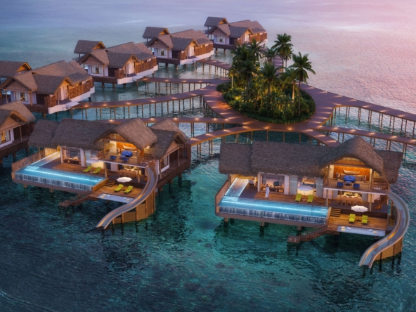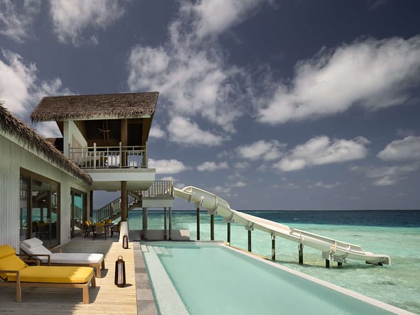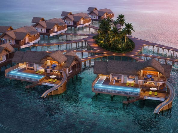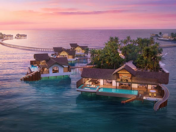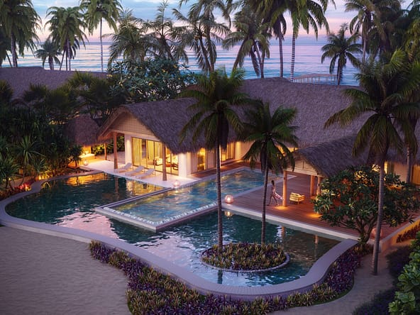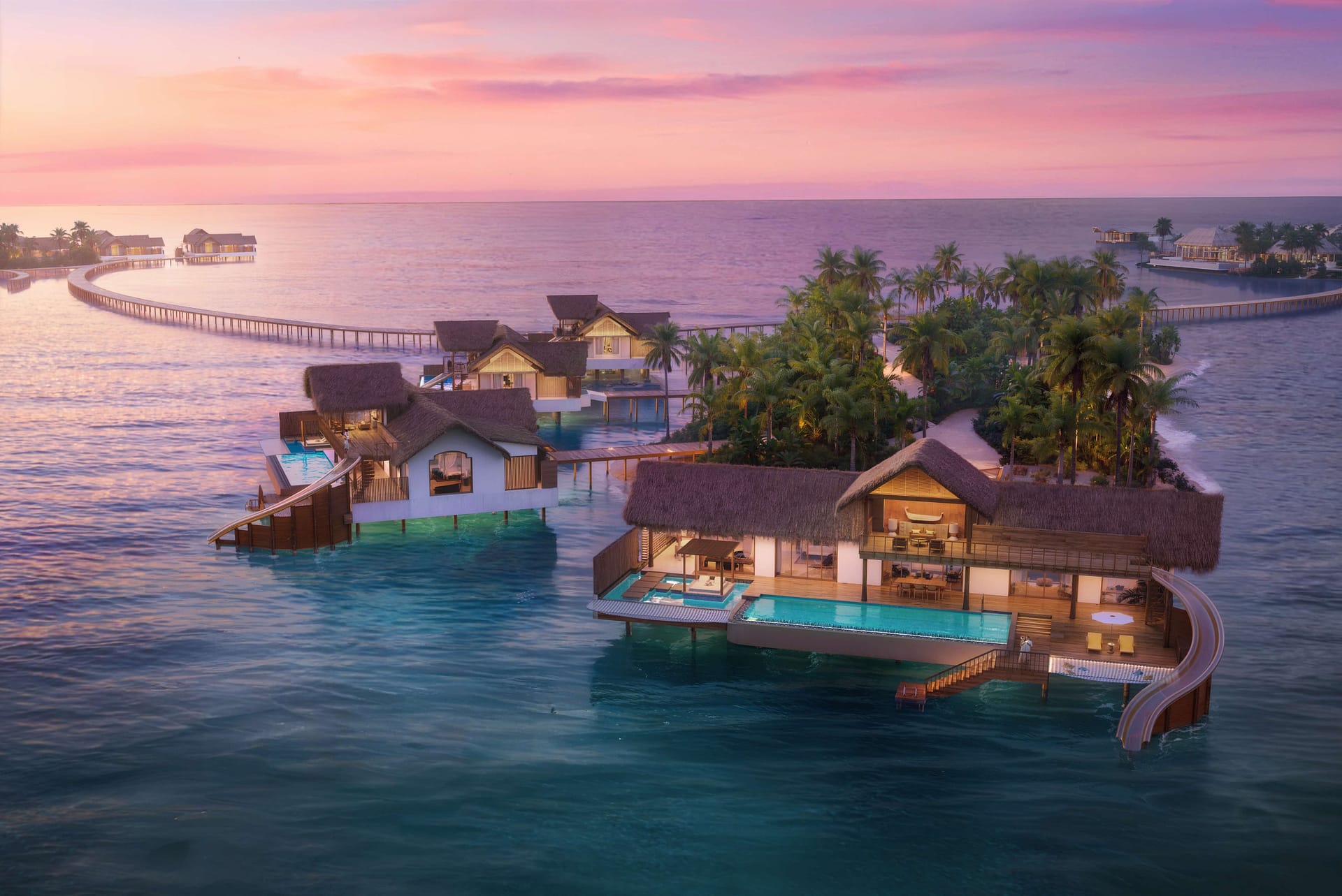 This ultra luxury isle features some of the Maldives most colossal and plush accommodations. Villas range from 900sqm to 1500sqm with rival pools. Interior feature bathtubs inlaid with semi-precious tones and beach units include zen courtyards. Guests are served by the apex of butler services and enjoy a multitude of haute cuisine dining options and state of the art wellness trigrams. Set to become one of the most iconic addresses in the world.South MalePropertyOverwater 2 Bedroom Villa | 358 sqm Build | 157 sqm | 94 sqm PoolThese expansive villas are conceived as modern pleasure palaces defined by soaring ceilings, indulgent design details, and the highest levels of privacy and personalised service.Every villa offers generous lounge areas, en-suite bathrooms, walk-in wardrobes, his and hers WCs, all-round jet rain showers, bathtubs, outdoor salas, decks, and outdoor showers. State-of-the-art AV systems with surround sound, minibars, wine fridges, and coffee & tea facilities come as standard.The over water villas feature elevated decks with ocean slides, overwater hammocks, and sunken baths that bring the horizon closer than ever.Dinning OptionsChampagne, Lobster &Caviar BarAll-Day DiningItalian & AsianRestaurantsFour beachside private-dining cabanasIndian & Peruvian RestaurantsThe Grill RoomThe Club House Bar & PoolResort Features Kids Club Water sports centre Diving Jetskis Snorkelling Kayaking Catamaran Wellness Spa Fitness Yoga pavilion Retail boutique Dedicated fitness coaches and personal trainers Photo studio Art gallery Library with iMac stations Outdoor cinema Tennis court Paddle court Dedicated butler for each villa Resident doctor and nurse High speed WiFi throughout the resort