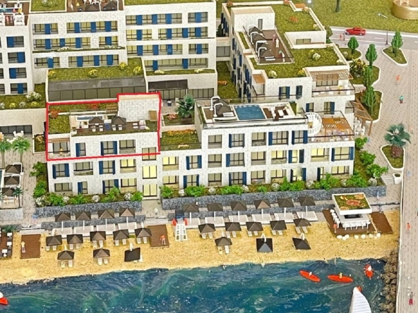 Penthouse EICHHOLTZ Mvenpick Residences, Kotor Bay.Located in the exclusive Mvenpick Residences Teuta Kotor Bay on the first seafront line, Penthouse EICHHOLTZ is one of six unique penthouses, each with its own design and style.This 288.32 m penthouse features a spacious living room with kitchen and dining area, three bedrooms, two bathrooms, and a guest toilet. Owners enjoy access to two balconies and a private terrace of 110.10 m, including a 43.82 m green area and a 10.77 m private pool with panoramic views of the Adriatic coastline. The residence comes fully furnished with premium-class designer finishes.Key Advantages:Prime seafront location with direct beach accessPrivate marina and yacht servicesPanoramic sea and coastline views5-star Mvenpick hotel by Accor GroupSpa and fitness center with indoor infinity pool, gym, yoga area, vitamin bar, and delicatessenSandy beach, beach bar, and childrens poolOn-site restaurants and bars24/7 concierge and securityFully managed rental programExclusive owner privileges including Platinum membership in Accor Live Limitless (ALL)Owner Privileges:VIP booking and personalized services at Accor hotels worldwideAutomatic room upgrades and discounted rates at participating propertiesAccess to special offers, benefits, and events across the Accor portfolioThis penthouse offers luxury living, investment potential, and exclusive lifestyle access, combining private residence comfort with legendary Mvenpick and Accor hospitality.Distance to sea: 50 meters.