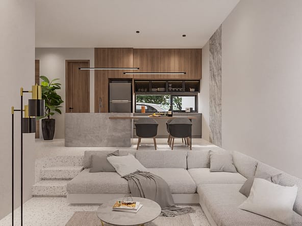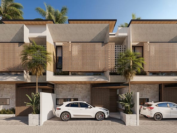 Five premium villas in the style of modern minimalism, harmoniously blending with the architectural traditions of Bali, built by a Balinese architectural firm, founded in 2010 with an experience collaborating with other architects from France and Australia. Just 500 meters from the ocean in the tranquil Lima neighbourhood bordering Pererenan. Experience the serenity of “Old Bali” with all the modern conveniences. Ocean views from the three-story rooftop enhance rental potential, while convenient access and private parking ensure a comfortable family retreat. The complex is built with modern, eco-friendly premium materials and is fully equipped with all necessary furniture and household appliances. Enjoy breathtaking vistas of Bali’s iconic rice paddies. Just for our investors, we partner with a well-known, 5th top property management company on the island, that will make your occupancy rate up to 94% and high ROI profitability.