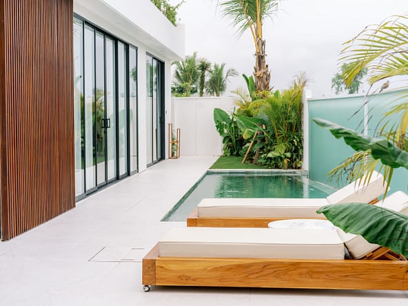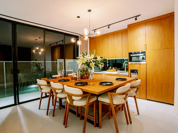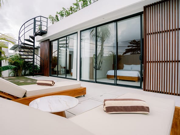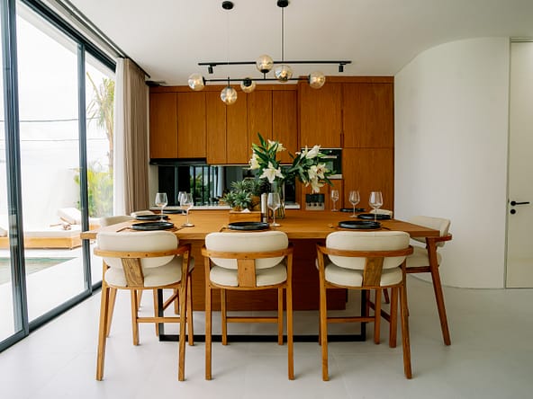 High ceilings and panoramic windows fill the space with light, allowing you to enjoy balinese sunrises and see off the sun on the pool deck.The spacious living room offers views of the ocean and lawn, and offers a great opportunity to spend quality time with your family and friends.