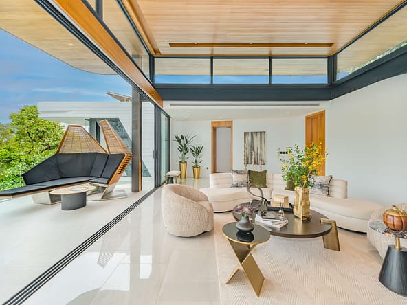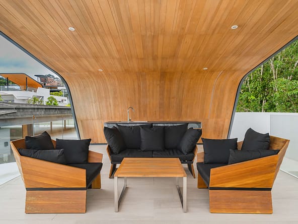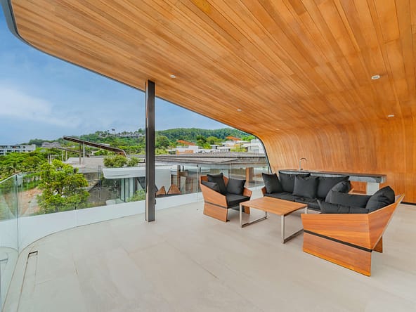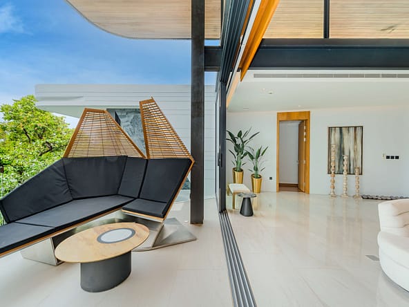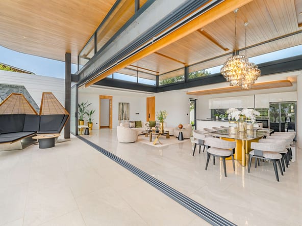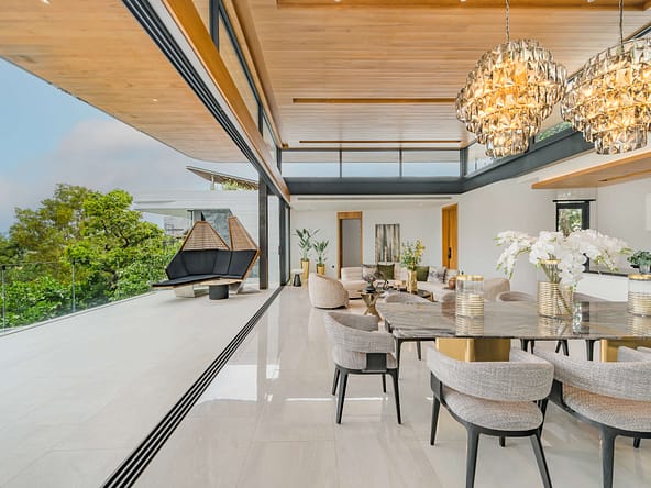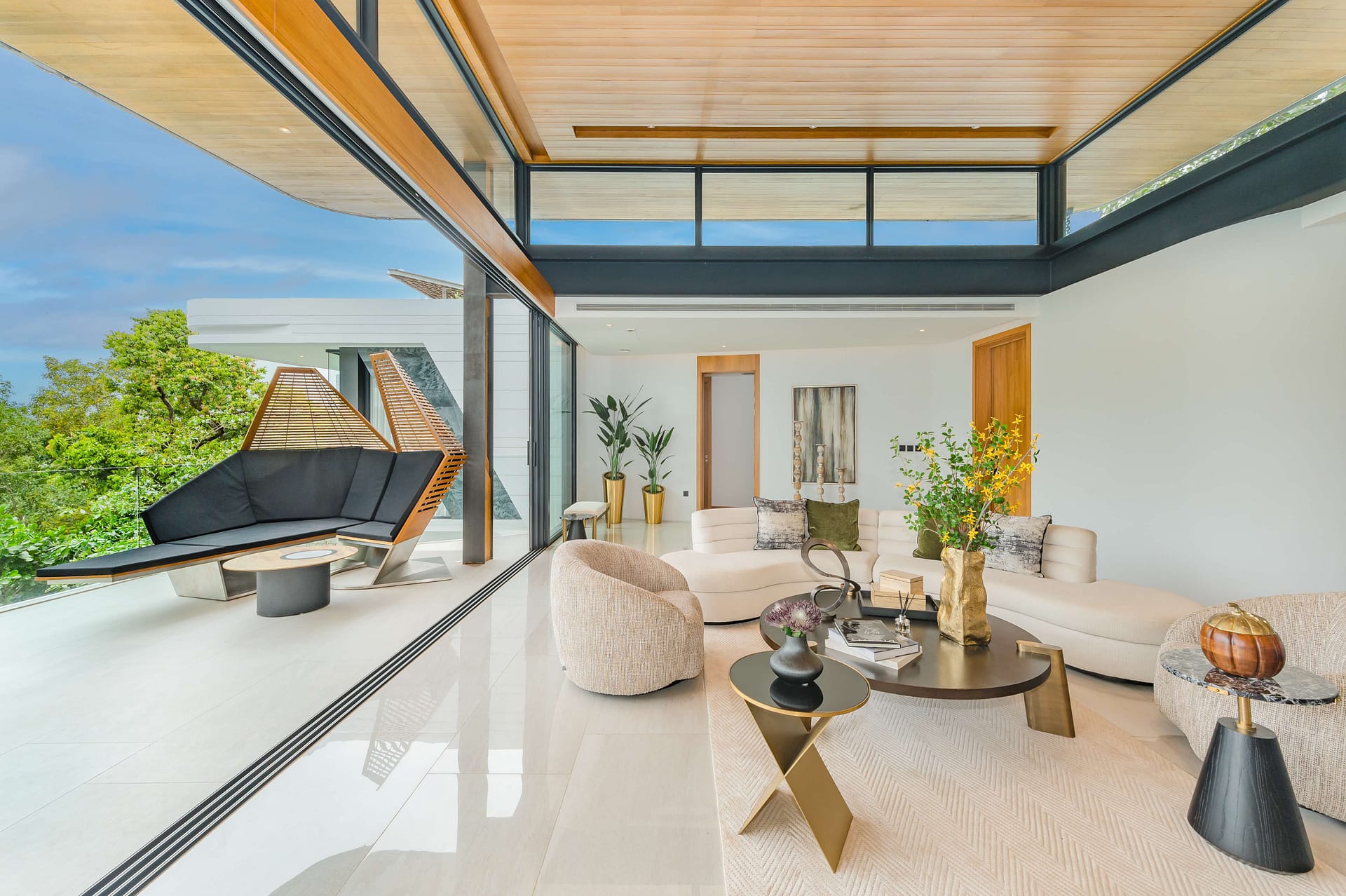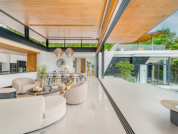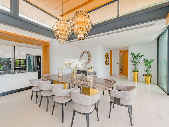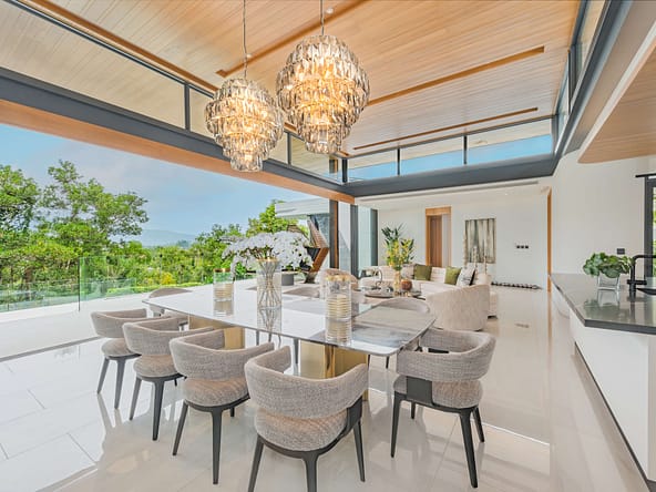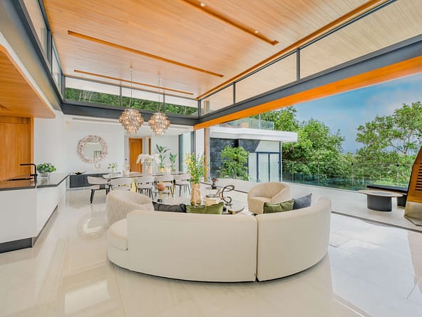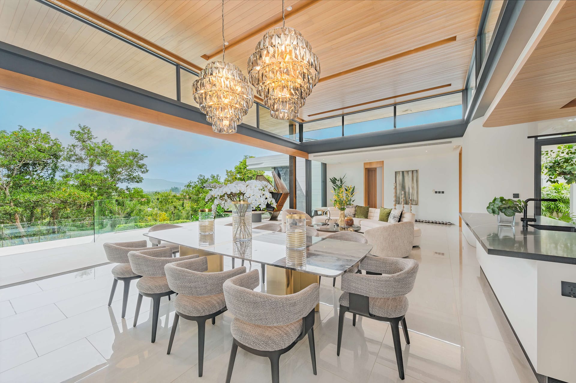 Step into the unparalleled luxury in an expansive living area, the embodiment of an ideal vacation home, equipped with advanced smart home technology for the ultimate modern living experience seldom found in Phuket. This area flows seamlessly into a fully-equipped kitchen, providing effortless convenience for casual dining.