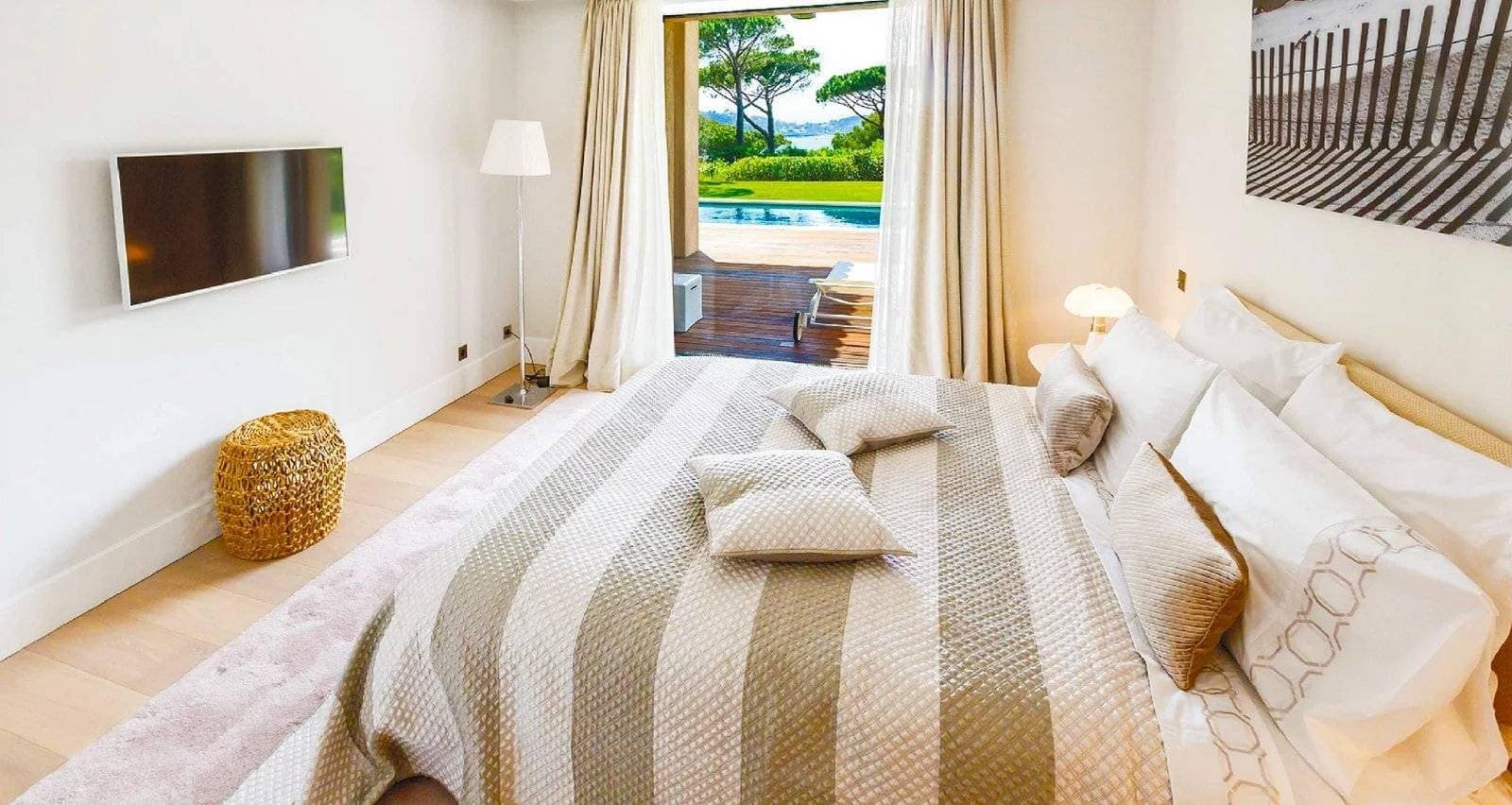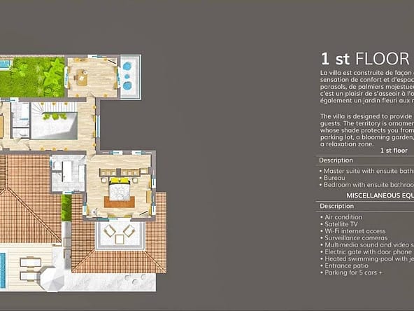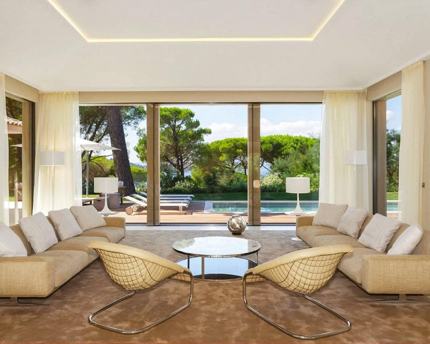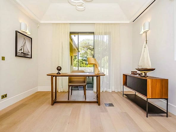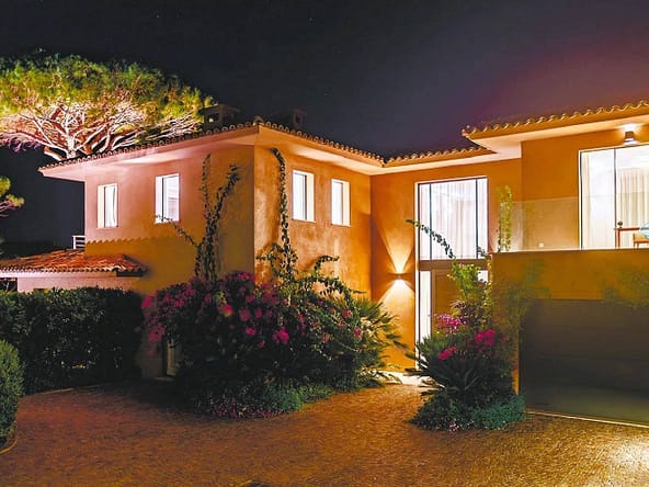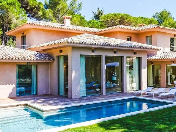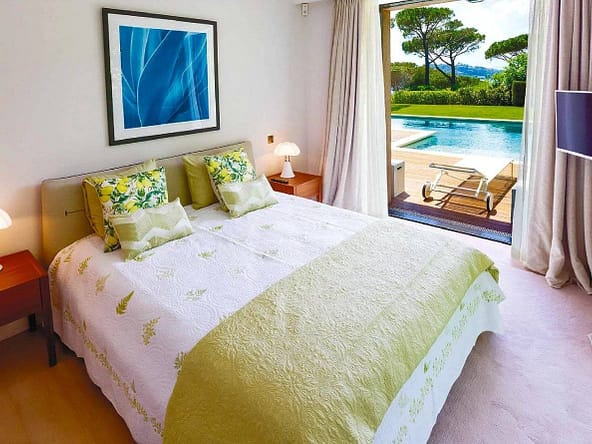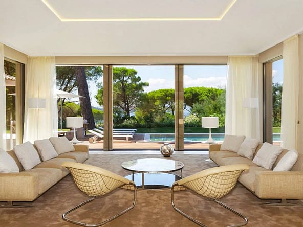 Located in the prestigious and secure domain Les Parcs de Saint-Tropez, this contemporary villa of approximately 500 m² offers refined luxury in a serene setting. Nestled within a beautifully landscaped garden of around 5,800 m², the property features a heated and illuminated swimming pool, multiple terraces, and direct access to the sea.The villa includes:• A grand double living room with high ceilings, opening onto a terrace and pool• An elegant dining room and a fully equipped kitchen with a professional counterpart linked by dumbwaiters• 3 en-suite bedrooms on the garden level, plus a staff apartment with separate entrance• Upstairs: a master suite with dressing room, safe, and bathroom, plus 2 additional bedrooms with bathrooms• Wellness amenities: massage room, sauna, hammam• Wine cellar, multimedia system, surveillance cameras, alarm, and Wi-Fi• Garage and parking for 5+ vehicles• 24/7 security, tennis courts, private beach, and on-site caretakerFeatures Air-conditioning Sliding windows Internet Furnished Irrigation sprinkler Fence Outdoor lighting Concierge Alarm system Safe Digicode Caretaker Intercom Electric gate Security service Video security Swimming pool Condominium pool Fitness Tennis courtDistances Sea 50 metres Beach 10 minutes Tennis 5 minutes