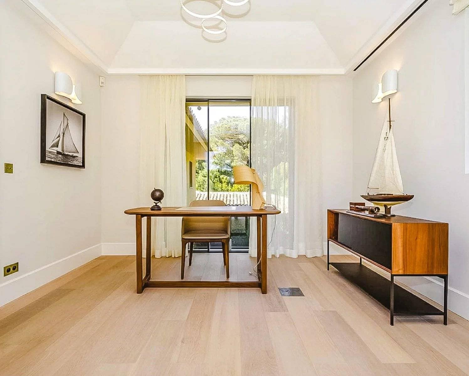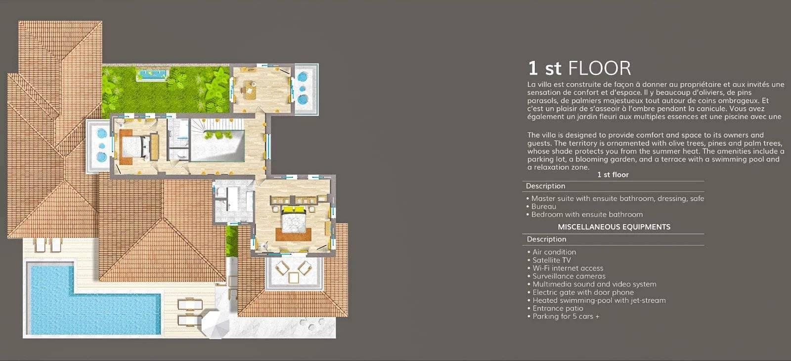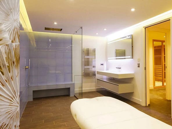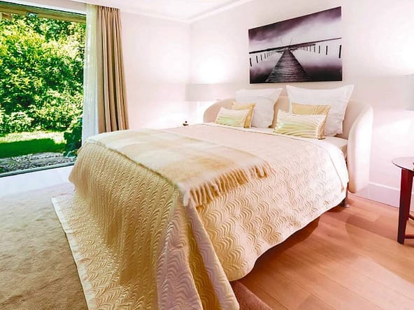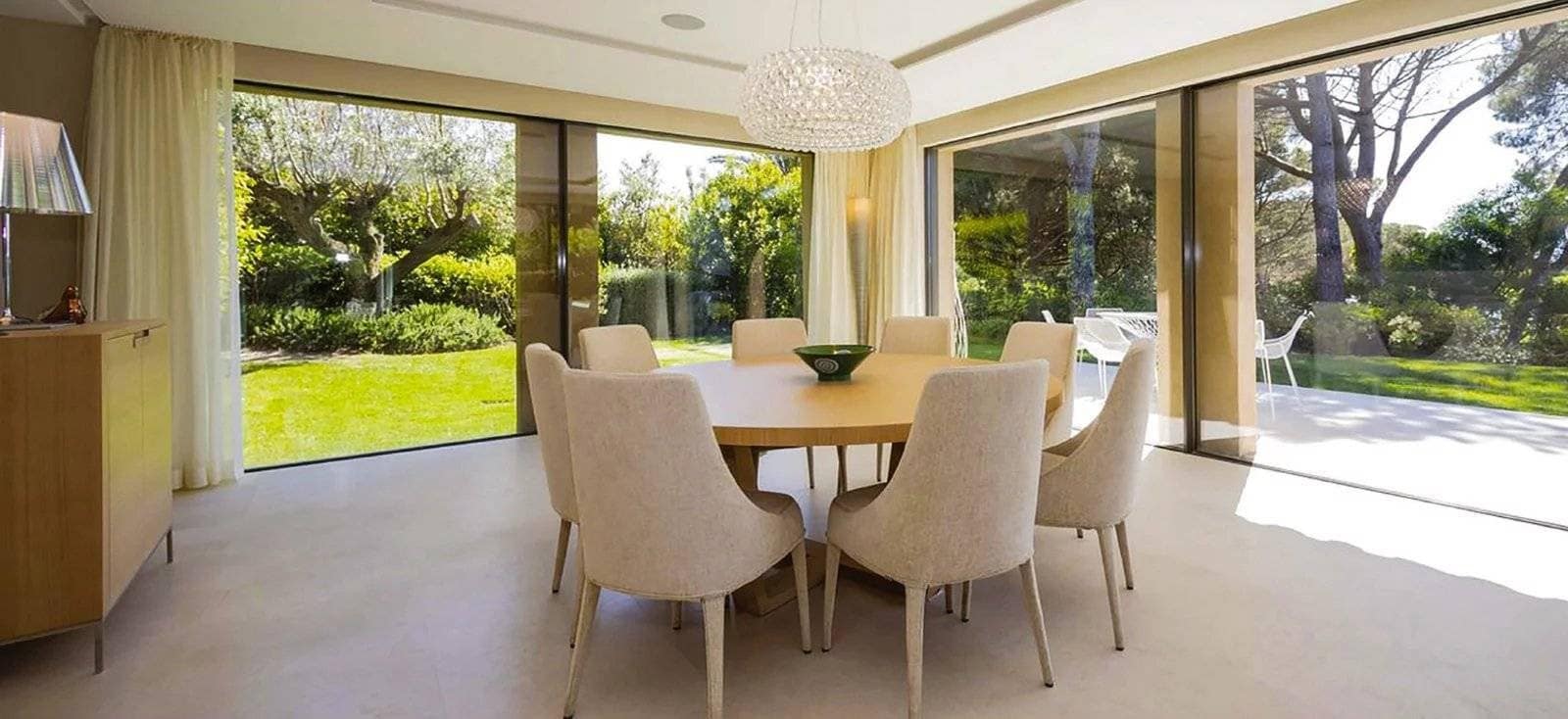 Located in the prestigious and secure domain Les Parcs de Saint-Tropez, this contemporary villa of approximately 500 m² offers refined luxury in a serene setting. Nestled within a beautifully landscaped garden of around 5,800 m², the property features a heated and illuminated swimming pool, multiple terraces, and direct access to the sea.The villa includes:• A grand double living room with high ceilings, opening onto a terrace and pool• An elegant dining room and a fully equipped kitchen with a professional counterpart linked by dumbwaiters• 3 en-suite bedrooms on the garden level, plus a staff apartment with separate entrance• Upstairs: a master suite with dressing room, safe, and bathroom, plus 2 additional bedrooms with bathrooms• Wellness amenities: massage room, sauna, hammam• Wine cellar, multimedia system, surveillance cameras, alarm, and Wi-Fi• Garage and parking for 5+ vehicles• 24/7 security, tennis courts, private beach, and on-site caretakerFeatures Air-conditioning Sliding windows Internet Furnished Irrigation sprinkler Fence Outdoor lighting Concierge Alarm system Safe Digicode Caretaker Intercom Electric gate Security service Video security Swimming pool Condominium pool Fitness Tennis courtDistances Sea 50 metres Beach 10 minutes Tennis 5 minutes