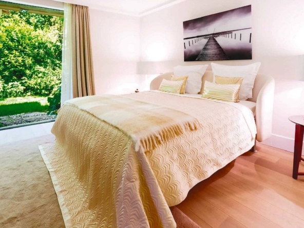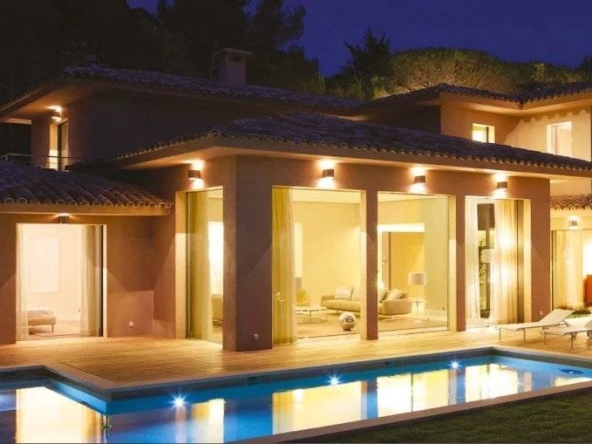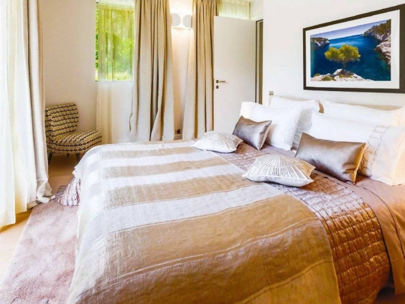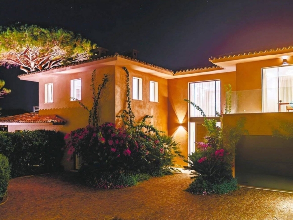 Located in the prestigious and secure domain Les Parcs de Saint-Tropez, this contemporary villa of approximately 500 m² offers refined luxury in a serene setting. Nestled within a beautifully landscaped garden of around 5,800 m², the property features a heated and illuminated swimming pool, multiple terraces, and direct access to the sea.The villa includes:• A grand double living room with high ceilings, opening onto a terrace and pool• An elegant dining room and a fully equipped kitchen with a professional counterpart linked by dumbwaiters• 3 en-suite bedrooms on the garden level, plus a staff apartment with separate entrance• Upstairs: a master suite with dressing room, safe, and bathroom, plus 2 additional bedrooms with bathrooms• Wellness amenities: massage room, sauna, hammam• Wine cellar, multimedia system, surveillance cameras, alarm, and Wi-Fi• Garage and parking for 5+ vehicles• 24/7 security, tennis courts, private beach, and on-site caretakerFeatures Air-conditioning Sliding windows Internet Furnished Irrigation sprinkler Fence Outdoor lighting Concierge Alarm system Safe Digicode Caretaker Intercom Electric gate Security service Video security Swimming pool Condominium pool Fitness Tennis courtDistances Sea 50 metres Beach 10 minutes Tennis 5 minutes